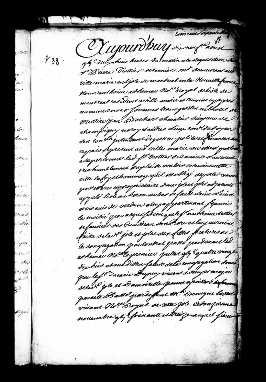 Acte de foi et hommage fait devant Jean Bochart Champigny, intendant en Nouvelle-France, par Pierre Trottier Desaunier (Desaulniers), marchand demeurant à Montréal, pour l'île aux Hérons et les îlets adjacents, situés au bas du saut Saint-Louis vis-à-vis Verdun