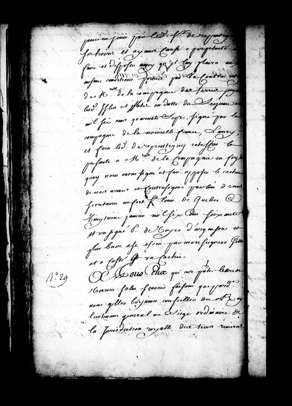 Sentence d'adjudication à Philippe Gautier (Gauthier), écuyer, sieur de Comporté, conseiller du Roi, prévôt des Maréchaux de France en Nouvelle-France, du fief et seigneurie de Villiers et des îles adjacentes avec tous les droits seigneuriaux et la maison seigneuriale, lequel fief ayant été saisi à Charles Le Gardeur (LeGardeur), écuyer, seigneur de Villiers, faute d'avoir remboursé audit Philippe Gautier la somme due selon l'obligation passée le 31 octobre 1679 devant le notaire Romain Becquet, et signification de ladite adjudication audit Charles Le Gardeur