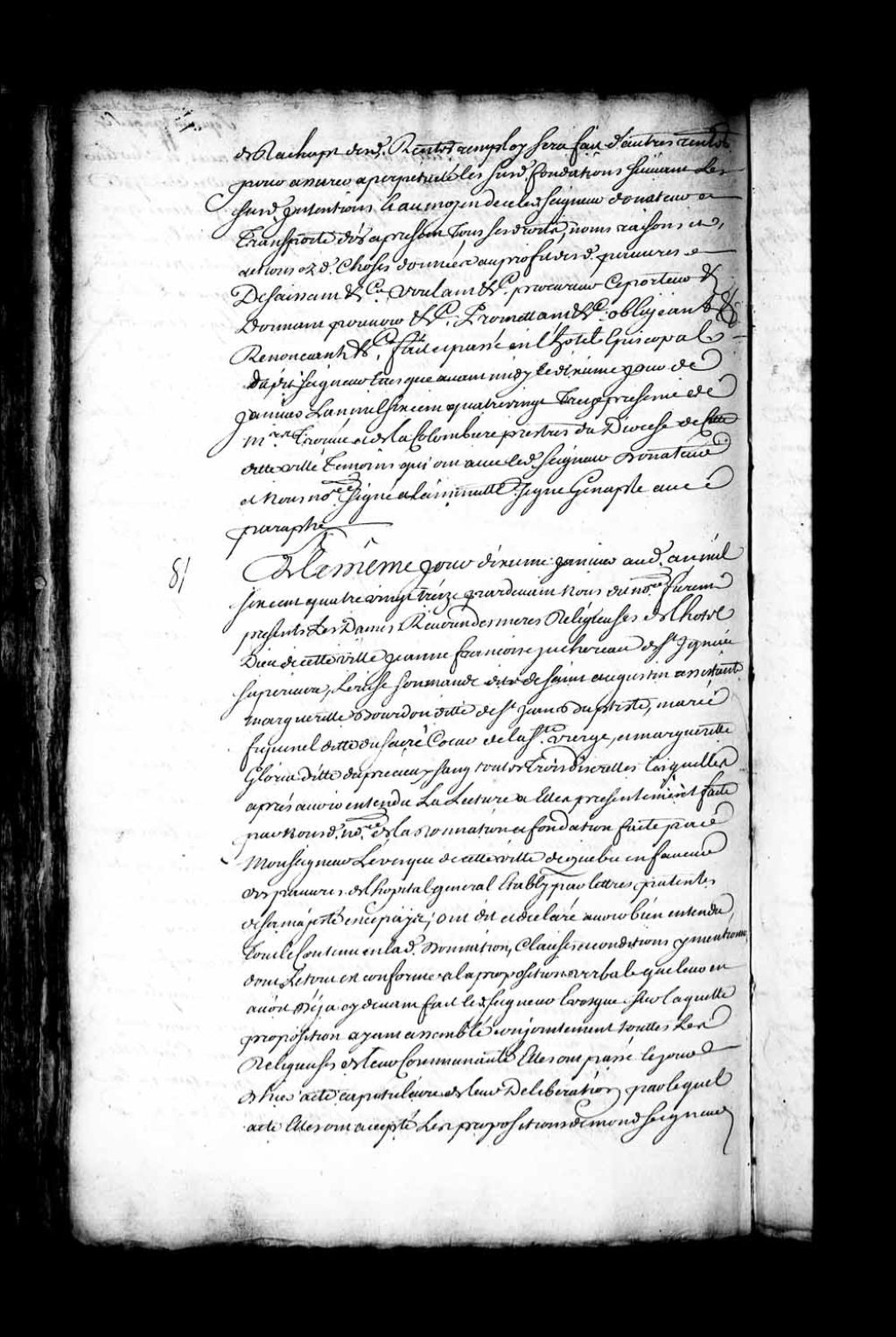 Ratification par les Dames Révérendes Religieuses de l'Hôtel-Dieu de Québec de la donation à elle faite le 10 janvier 1693 par monseigneur l'illustrissime et révérendissime père en Dieu messire Jean-Baptiste de Saint-Vallier (Notaire François Genaple de Bellefonds), 10 janvier 1693, Archives nationales à Québec, Fonds Intendants, (03Q,E1,S4,SS1,D161,P17).