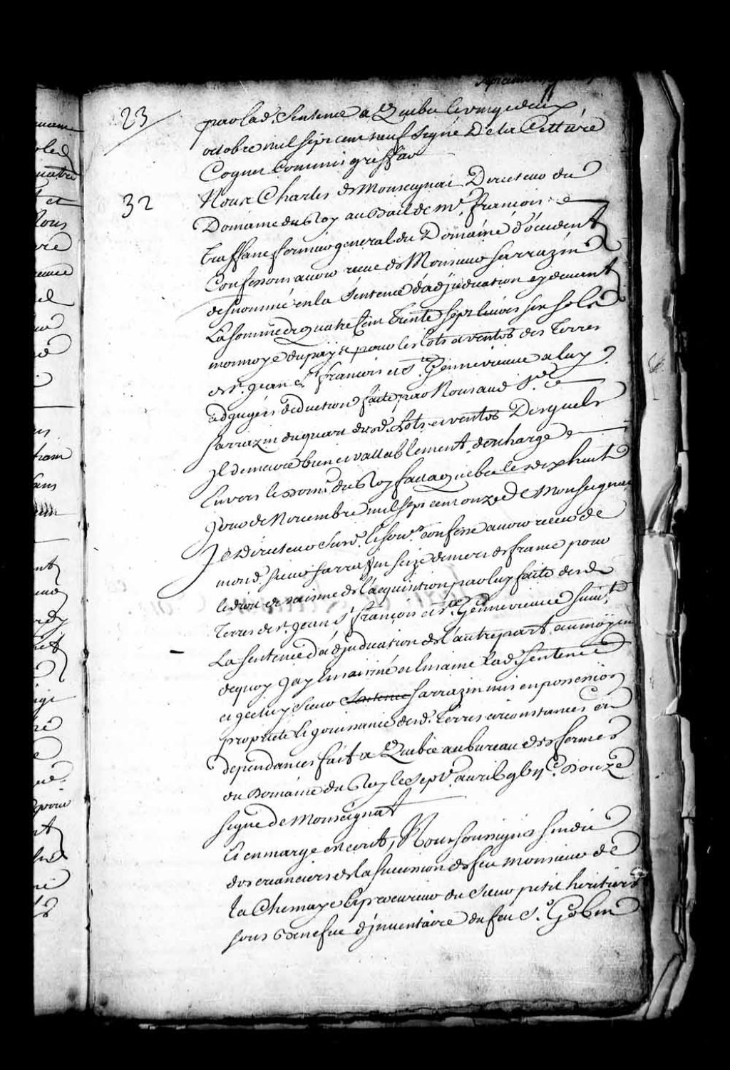 Reçu pour le paiement des droits de lots et ventes par monsieur Sarrazin pour l'acquisition du fief et de la seigneurie de Saint-Jean