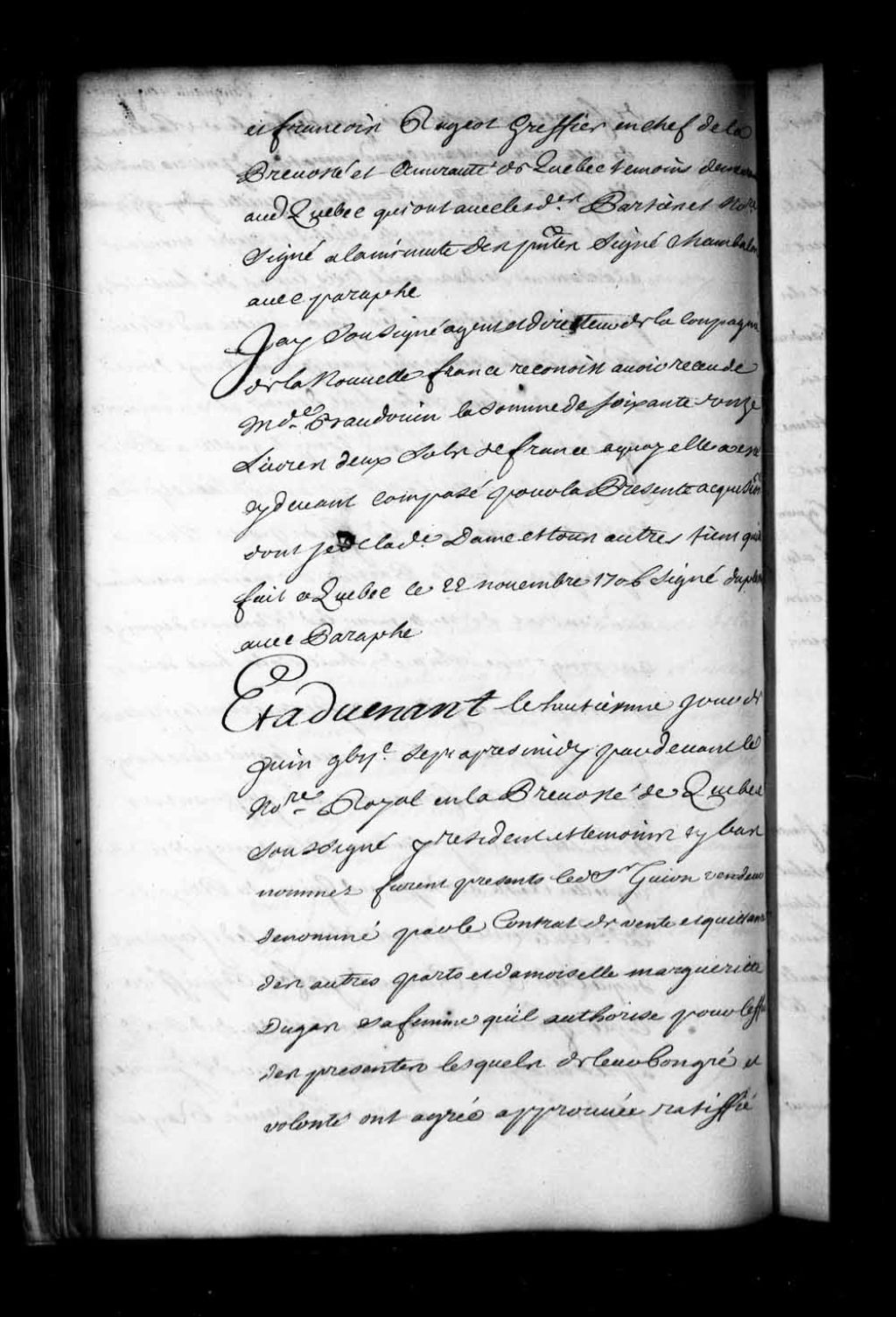 Reçu pour le paiement des droits d'acquisition par madame Baudoin (Baudouin, Beaudoin)