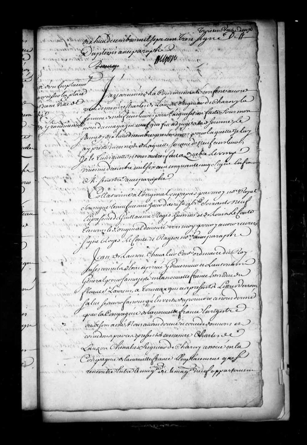 Concession par Jean de Lauzon, Chevalier, conseiller ordinaire du Roi, gouverneur et lieutenant général de Sa Majesté en Nouvelle-France, à messire Charles de Lauzon, Chevalier, seigneur de Charny, associé en la Compagnie de la Nouvelle-France, d'un emplacement entre le magasin dit le magasin neuf, appartenant à la Communauté des habitants de la Nouvelle-France, et la maison des Gaignons (Gagnon), en la Basse-Ville de Québec