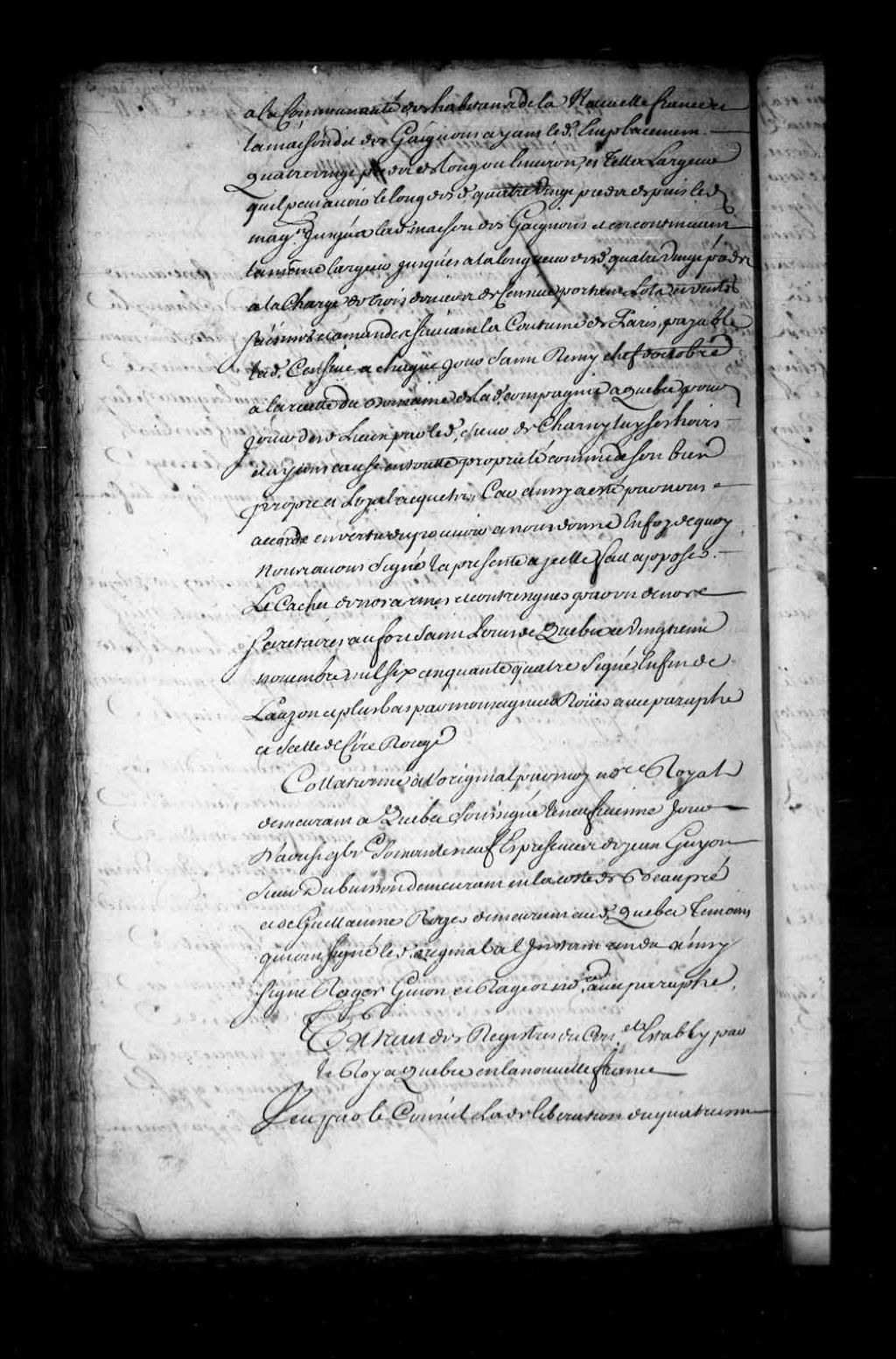 Sentence et procès-verbal d'adjudication au sieur Charles Sevestre, pour Charles de Lauzon, Chevalier, seigneur de Charny, du magasin situé sur le quai de la Basse-Ville de Québec et appartenant à la communauté, suite aux délibérations du Conseil souverain de la Nouvelle-France, lequel Conseil ordonnant la mise en vente par licitation desdites propriétés, 4 décembre 1655, Archives nationales à Québec, Fonds Intendants, (03Q,E1,S4,SS1,D252,P3).