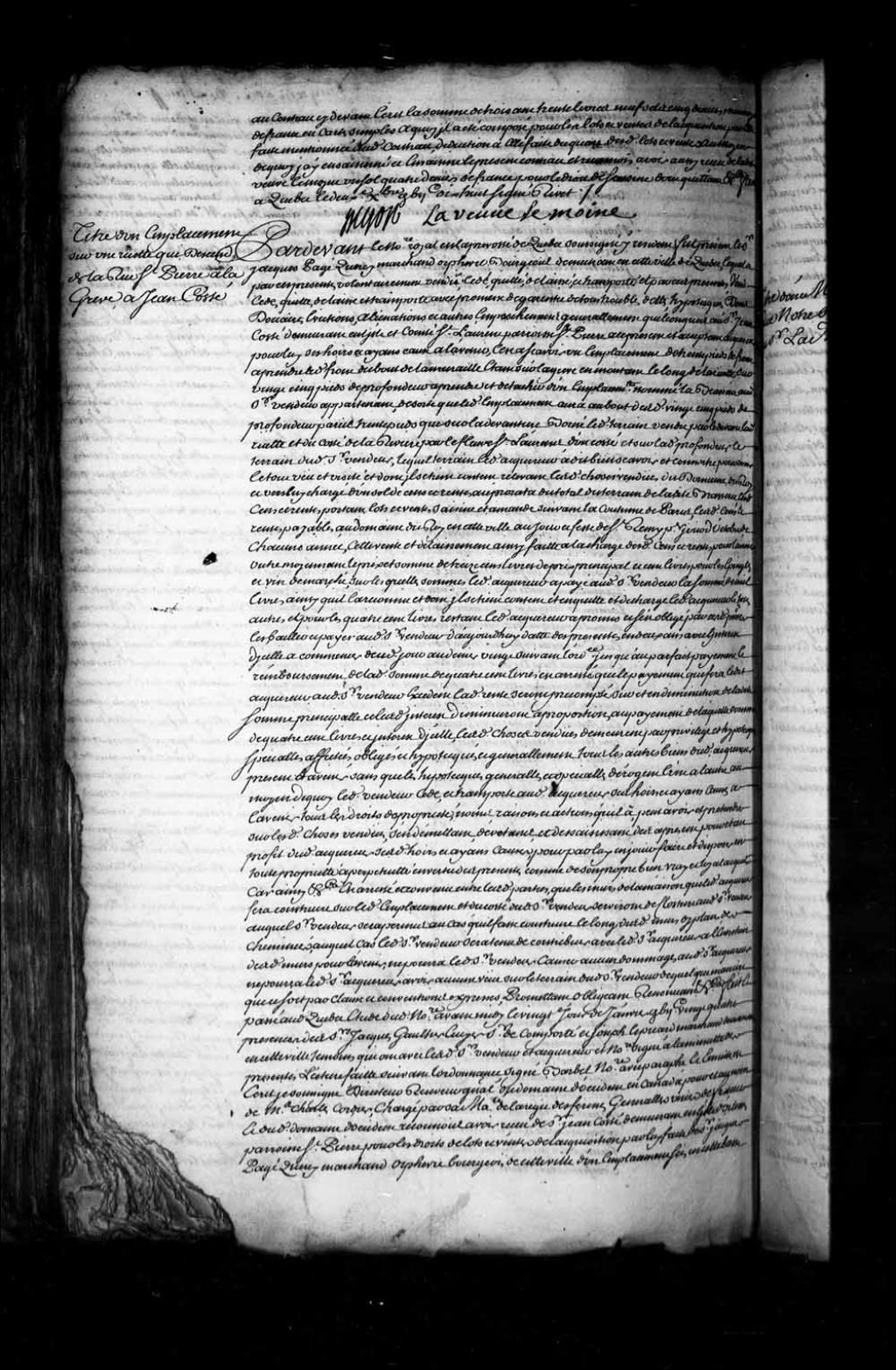 Contrat de vente par le sieur Jacques Pagé Quercy (Carcy, Carsy, Quarcy), marchand orfèvre et bourgeois de Québec, au sieur Jean Costé (Côté), demeurant en la paroisse Saint-Pierre de l'île et comté de Saint-Laurent (île d'Orléans), d'un emplacement situé au bout de la muraille, sur la grève, borné par une ruette (ruelle) qui monte de la grève et par le fleuve Saint-Laurent (Notaire Jacques Barbel)