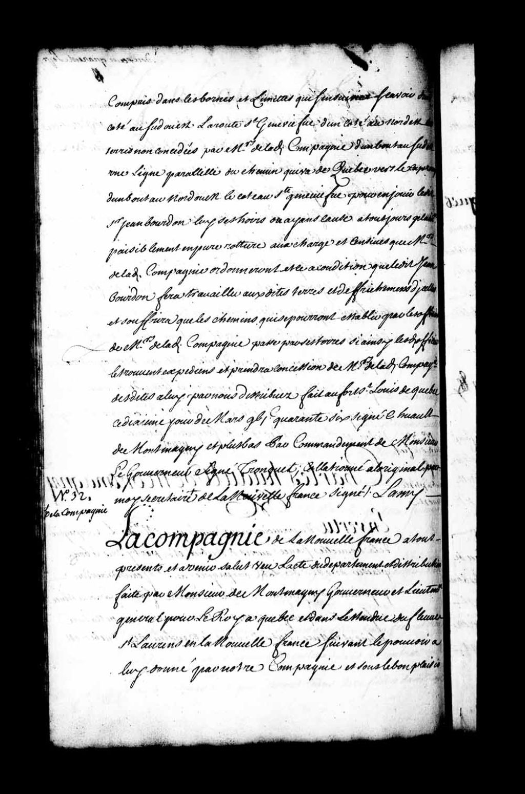 Mandement des messires de la Compagnie de la Nouvelle-France pour mettre le sieur Jean Bourdon en possession de la concession à lui accordée par ladite Compagnie de la Nouvelle-France le 10 mars 1646