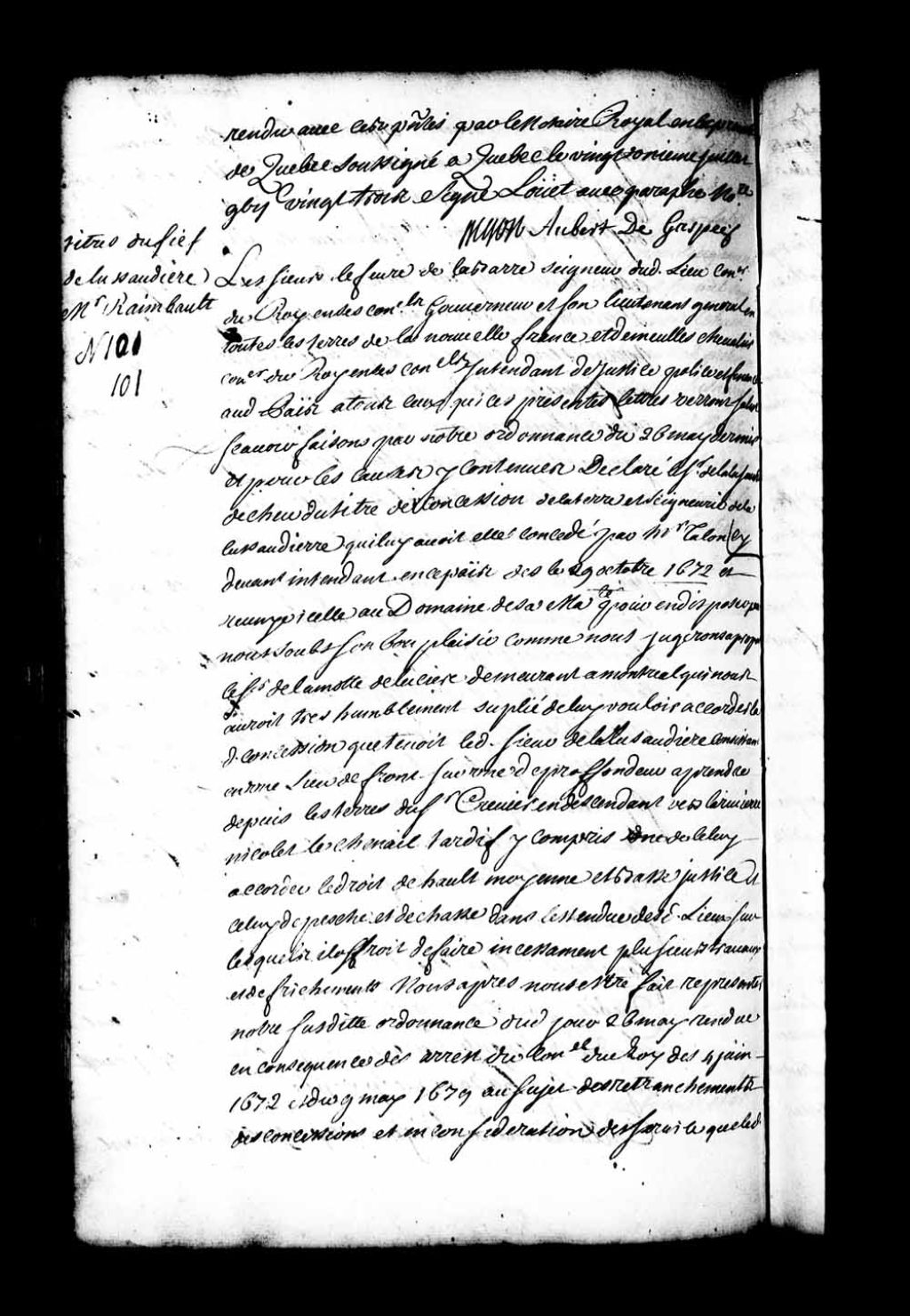 Concession par Joseph-Antoine Lefebvre de La Barre et Jacques de Meulles, gouverneur et intendant de la Nouvelle-France, au sieur de Lamothe de Lucière, demeurant à Montréal, de la terre que tenait le sieur de la Lussaudière consistant en une lieue de front sur une lieue de profondeur, à prendre depuis les terres du sieur Crevier en descendant dans la rivière Nicolet, le chenail Tardif inclusivement, à titre de fief et seigneurie avec haute, moyenne et basse justice, 26 juillet 1683, Archives nationales à Québec, Fonds Intendants, (03Q,E1,S4,SS1,D91,P1).