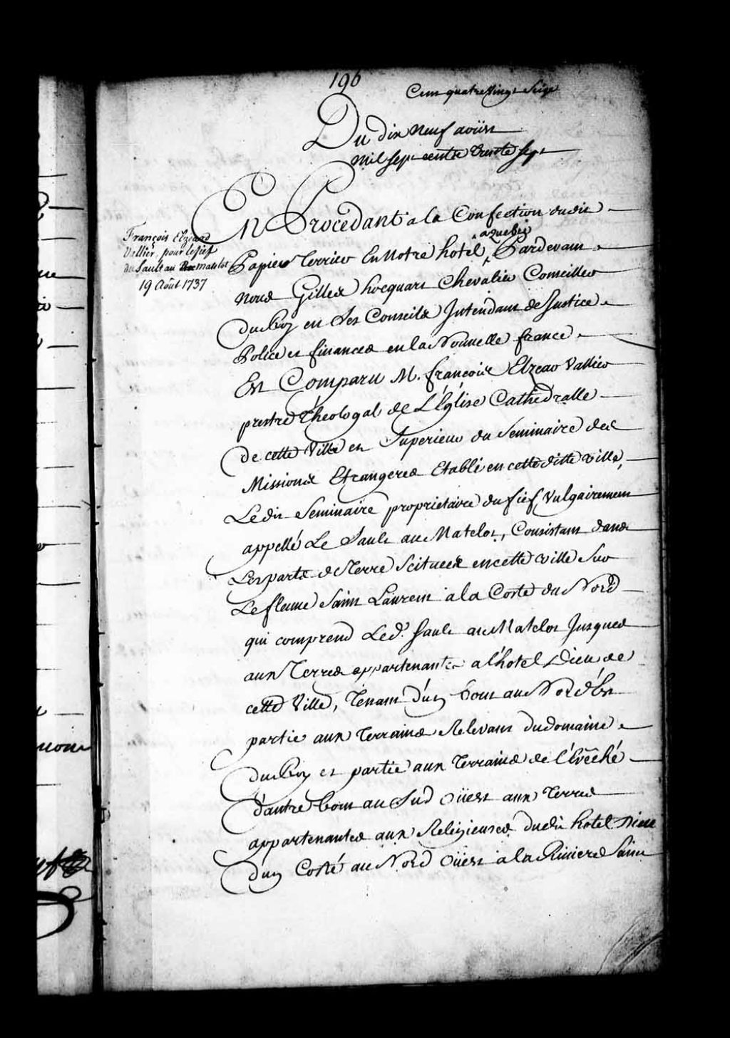 - Acte de foi et hommage de messire François-Elzéar Vallier, prêtre théologal de la cathédrale de Québec, supérieur du Séminaire de Québec, pour le fief du Sault-au-Matelot appartenant audit séminaire