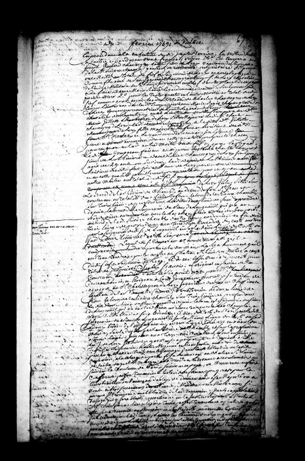 Acte de foi et hommage de Joseph-Gaspard Chaussegros de Léry, capitaine des troupes du détachement de la Marine en Nouvelle-France, propriétaire pour une moitié au total du fief et seigneurie de Léry, comme fils aîné de feu Gaspard Chaussegros de Léry et de Marie-Renée Le Gardeur (LeGardeur) de Beauvais, sa femme, propriétaire aussi pour les trois quarts en l'autre moitié au total dudit fief comme ayant acquis les droits de Charles Chaussegros de Léry, de Marie-Régis Chaussegros de Léry, épouse et procureure de Louis Le Gardeur de Repentigny, lequel acte de foi et hommage étant fait pour ledit fief de Léry, 1er février 1759 - 28 février 1759, Archives nationales à Québec, Fonds Intendants, (03Q,E1,S4,SS2,P454).