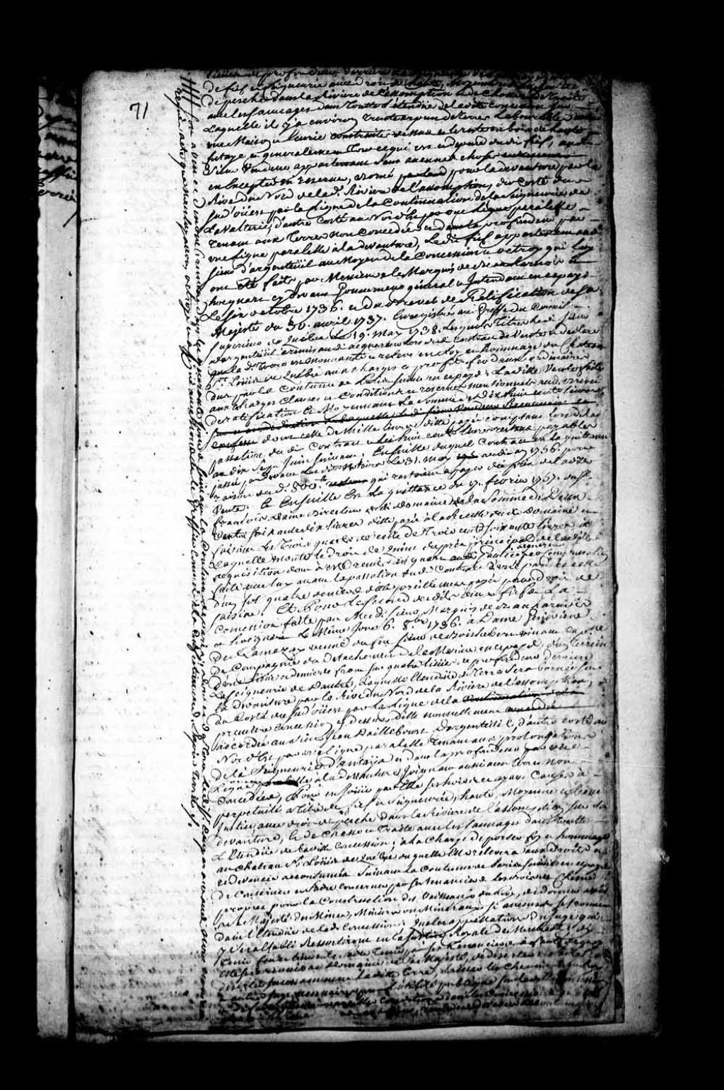 Acte de foi et hommage d'Antoine de Lafontaine, sieur de Belcour (Belcourt), fondé de procuration de Joseph Gautier (Gauthier), major des milices du fief et seigneurie de Varennes, propriétaire de deux fiefs contigus l'un à l'autre et situés derrière les seigneuries de la Noraye et de Dautray (Dautré), l'un concédé le 6 octobre 1736 par messires de Beauharnois et Hocquart à Jean d'Ailleboust d'Argenteuil, lequel fief ledit Gautier a acheté du sieur Jean d'Ailleboust d'Argenteuil par acte de Maîtres Danré de Blanzy et Panet, notaires royaux à Montréal, le 17 février 1756, l'autre concédé le 7 octobre 1736 par messires de Beauharnois et Hocquart à Geneviève de Ramezay, veuve de Louis des Champs (Deschamps) de Boishébert, lequel fief ledit Gautier a acheté du sieur Pierre Payan (Payen) de Noyan, fondé de procuration de ladite dame veuve des Champs de BoisHébert, par acte de Maître Danré de Blanzy, notaire à Montréal, le 10 juillet 1755