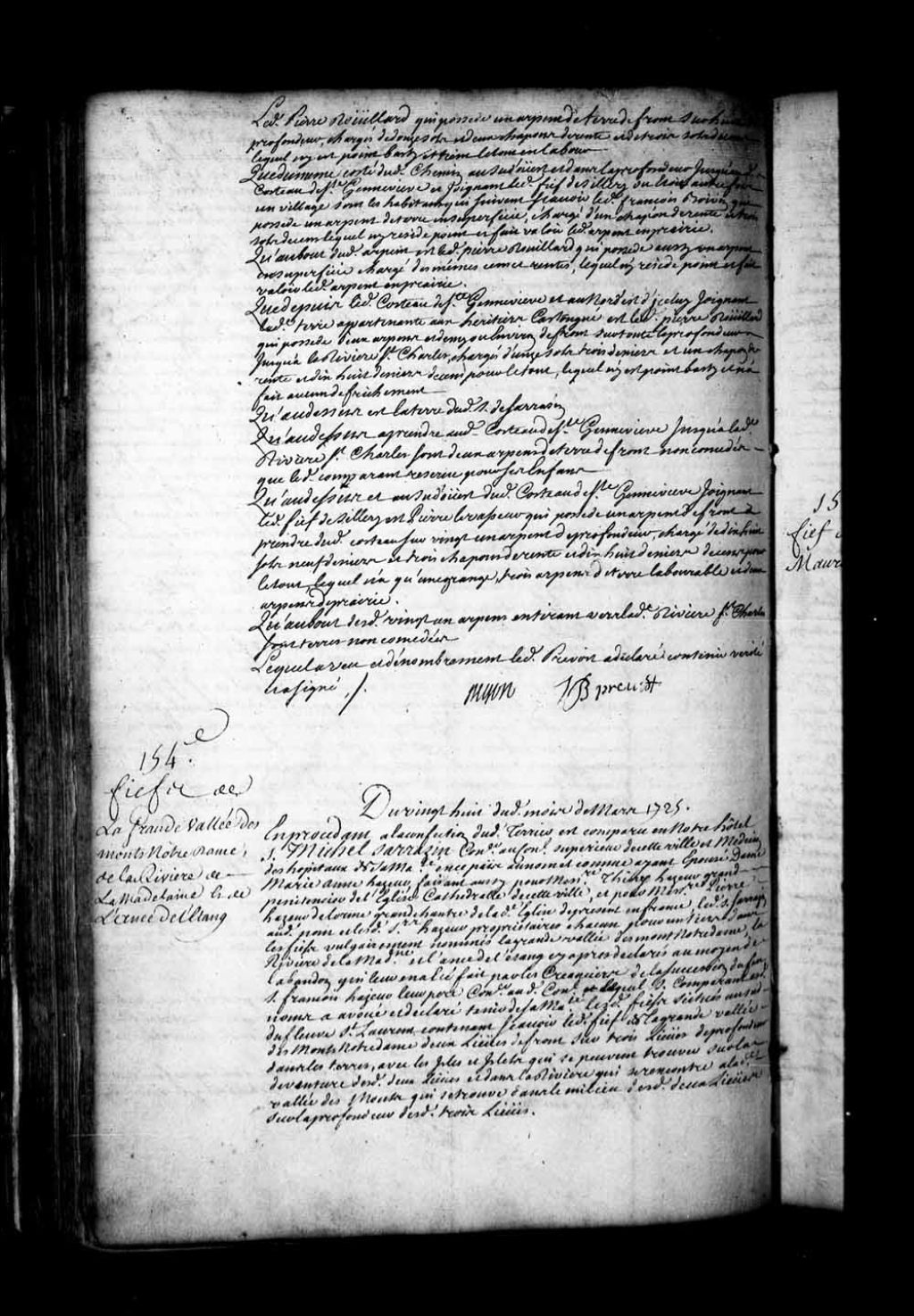 Aveu et dénombrement du sieur Michel Sarrazin, conseiller au Conseil supérieur et médecin des hôpitaux de Sa Majesté en Nouvelle-France, au nom et comme ayant épousé Marie-Anne Hazeur, faisant aussi pour messire Thierry Hazeur, propriétaire chacun pour un tiers du fief vulgairement nommé Grande-Vallée des Monts-Notre-Dame, la Rivière-la-Madeleine et l'Anse-de-l'Étang, lequel aveu et dénombrement étant fait pour ledit fief, 28 mars 1725, Archives nationales à Québec, Fonds Intendants, (03Q,E1,S4,SS3,P154).