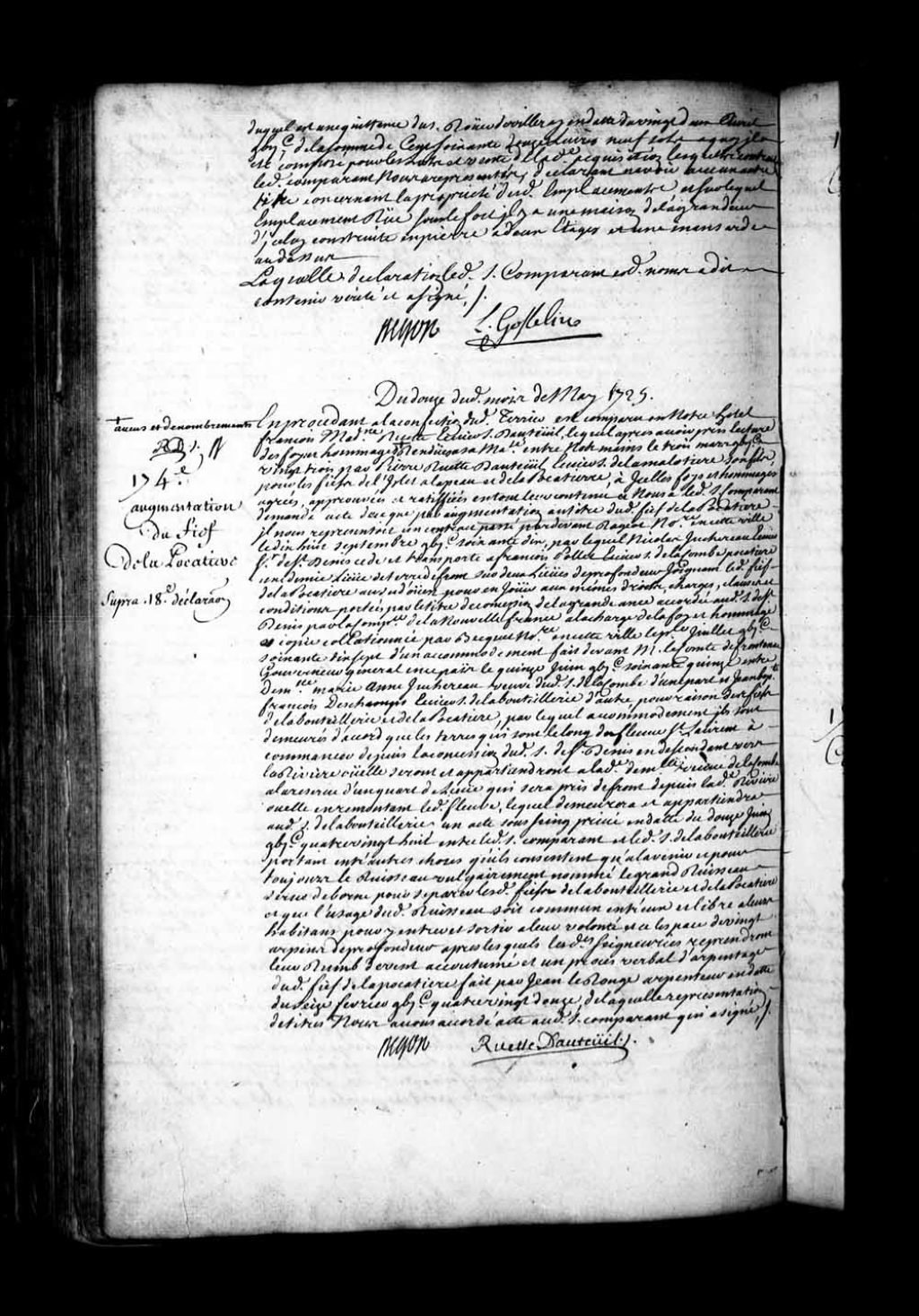 Aveu et dénombrement de François-Madeleine Ruette, écuyer, sieur d'Auteuil, propriétaire du fief de l'île à la Peau et de La Pocatière
