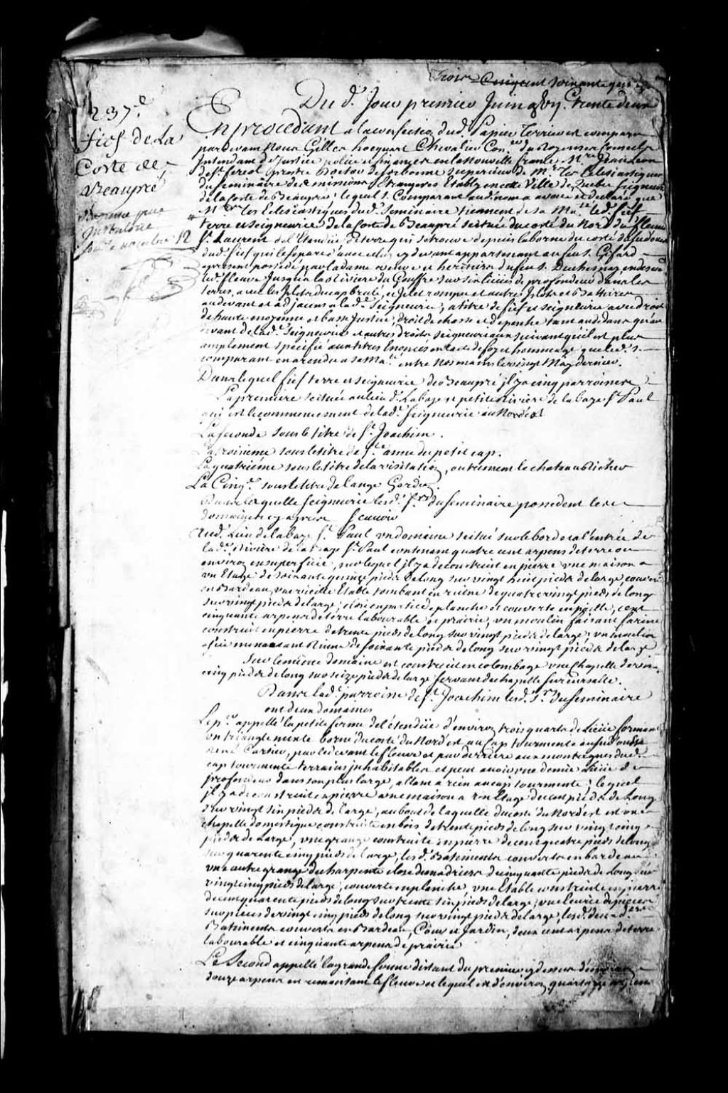 Aveu et dénombrement de messire Jean Léon (Lyon) de Saint-Feréol (Saint-Ferréol), prêtre, docteur de Sorbonne, supérieur de messires les Écclésiastiques du Séminaire des Missions étrangères établi à Québec, pour le fief, terre et seigneurie de la Côte-de-Beaupré