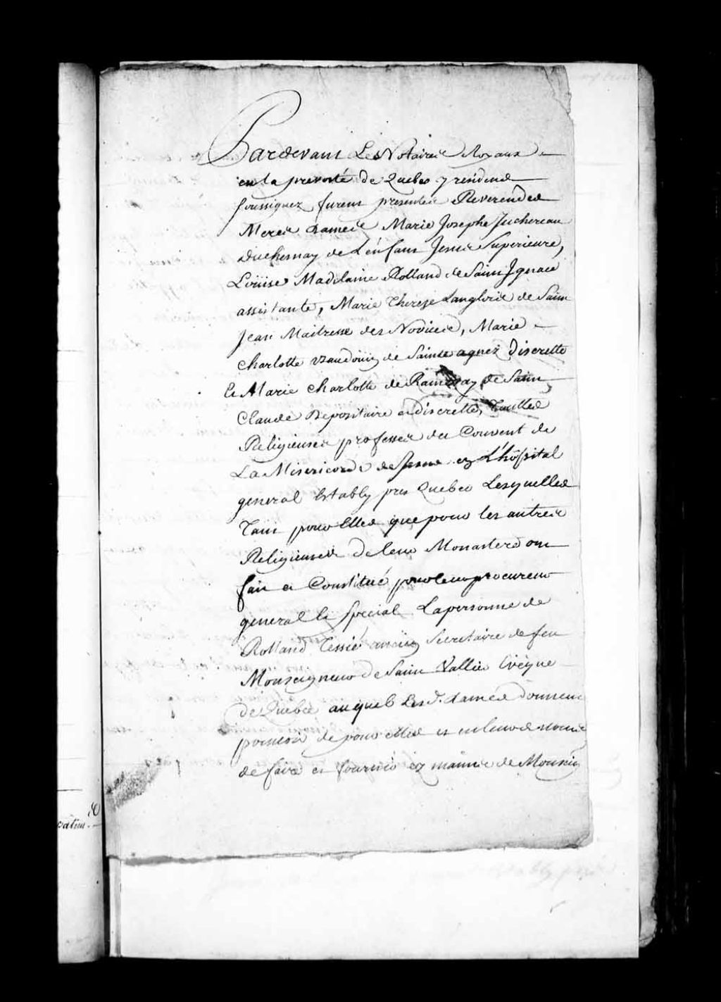 - Aveu et dénombrement du sieur Rolland Tessier, ancien secrétaire de feu Monseigneur de Saint-Vallier, évêque de Québec, fondé de la procuration spéciale des Dames Supérieures assistantes du Couvent de la Miséricorde de Jésus de l'Hôpital général, pour le fief de cent six arpents de terre en superficie vulgairement dit la "Terre des Récollets" et pour le fief et comté d'Orsainville