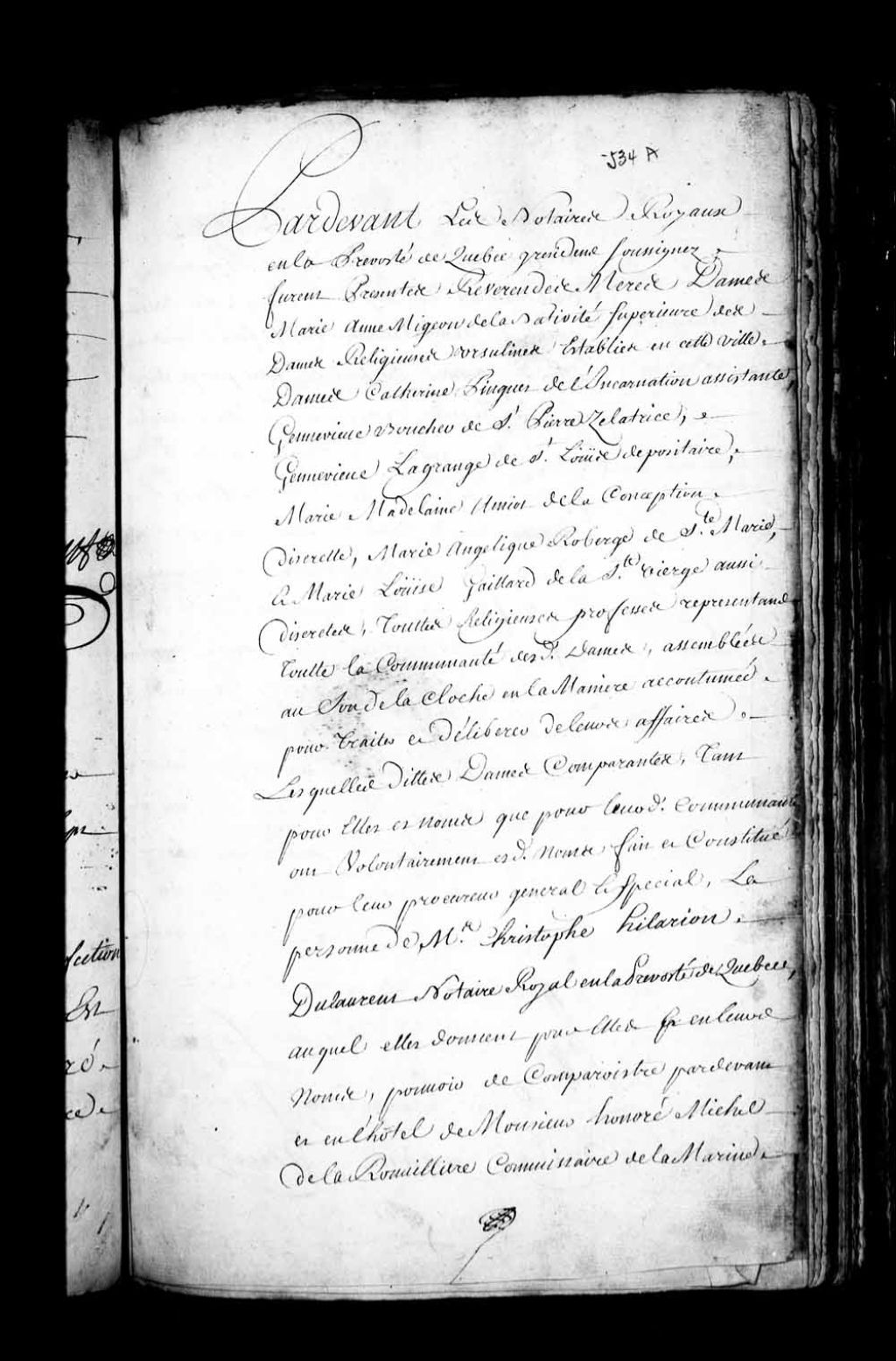 - Aveu et dénombrement de Christophe-Hilarion Dulaurent (Du Laurent), notaire royal en la Prévôté de Québec, fondé de procuration des Dames Religieuses Ursulines de Québec, pour le fief et seigneurie de Sainte-Croix