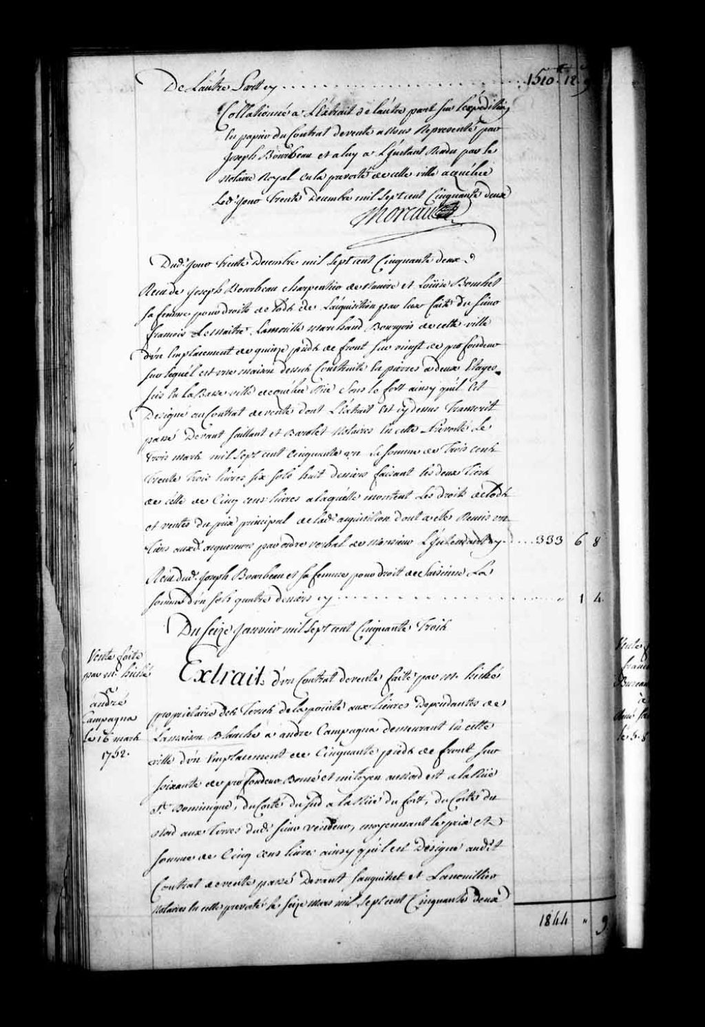 Reçu pour le paiement des droits de lots et ventes et des droits de saisine par Joseph Bourbeau, charpentier de navire, et Louise Bouchet (Boucher), sa femme