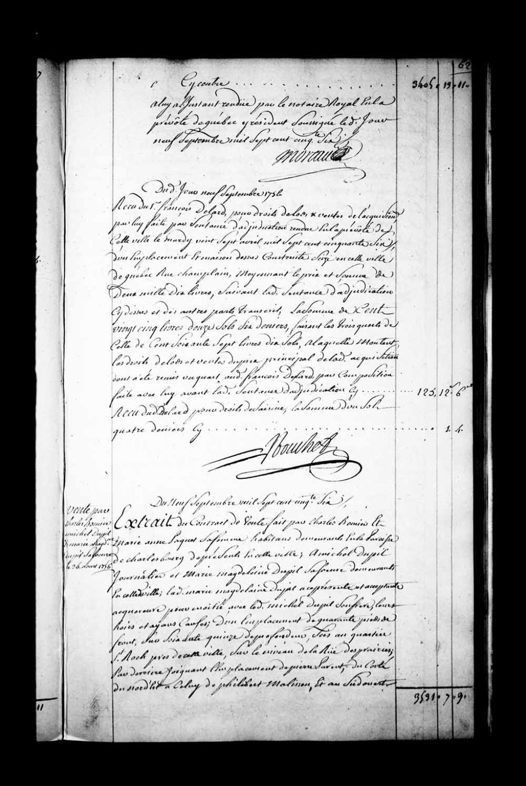 Reçu pour le paiement des droits de lots et ventes et des droits de saisine par le Sieur François Delard