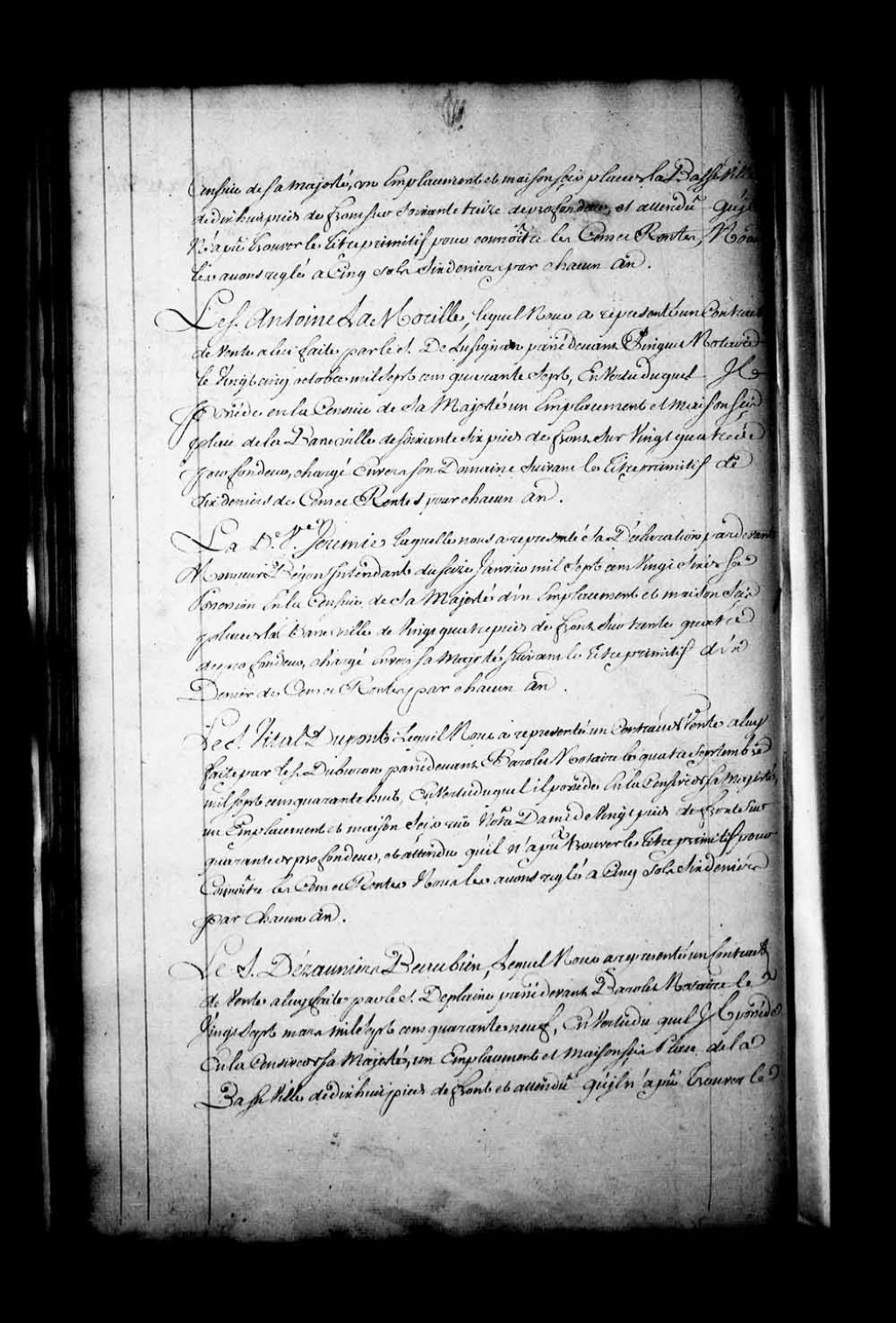 Déclaration du Sieur Dézauniers Beaubien (Desaulniers) quant à un emplacement et une maison sis Place de la Basse-Ville en la Basse-Ville de Québec, 4 mars 1756, Archives nationales à Québec, Fonds Intendants, (03Q,E1,S4,SS4,P126).
