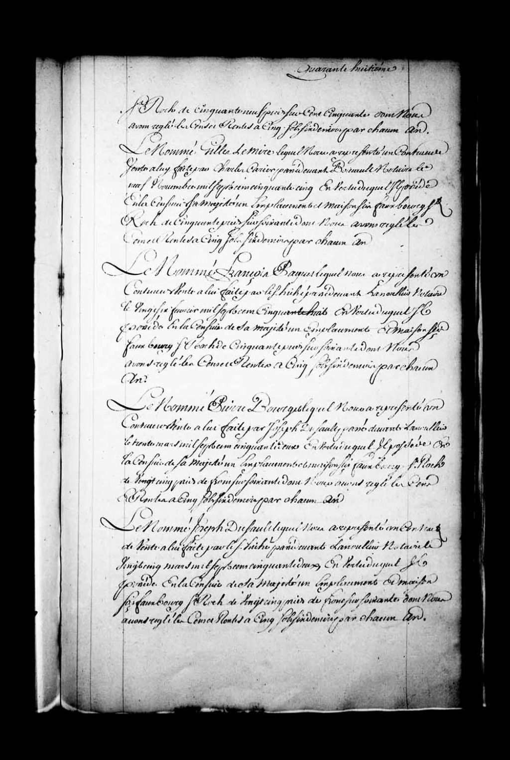 Déclaration du nommé Gilles LeMire quant à un emplacement et une maison sis au faubourg Saint-Roch de Québec