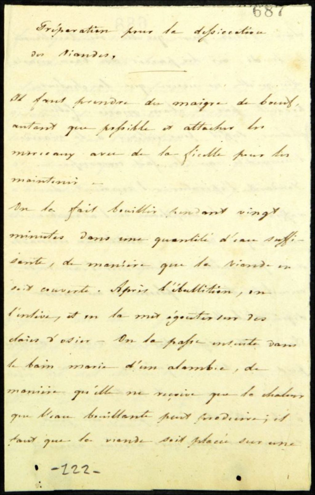 Préparation pour la dissection des viandes, 1er janvier 1798 et 31 décembre 1921, Archives nationales à Québec, Fonds Famille Joly de Lotbinière, (03Q,P351,S2,P122).