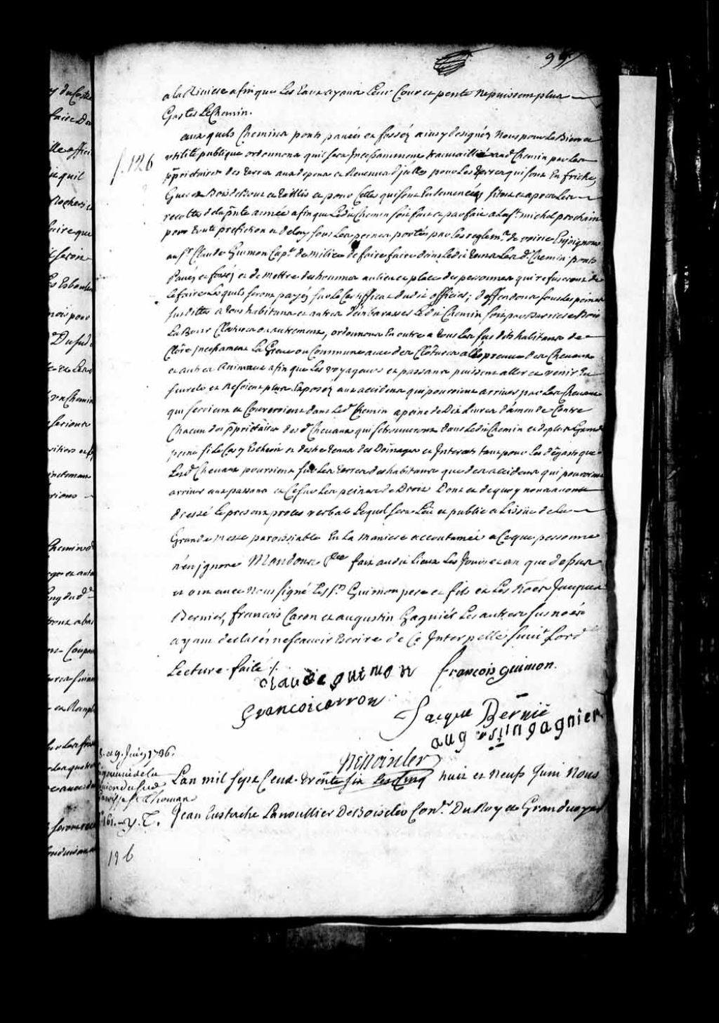 Procès-verbal de Jean-Eustache Lanouillier de Boiscler qui marque et trace un chemin royal de vingt-quatre pieds de largeur sur la seigneurie de la Rivière-du-Sud, paroisse Saint-Thomas