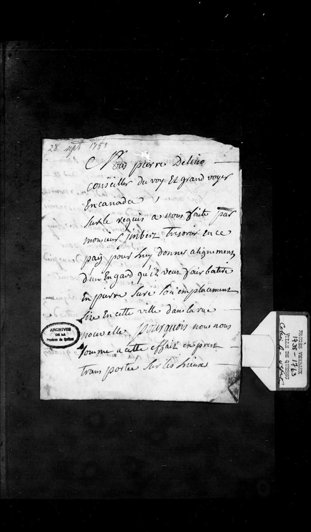 - Procès-verbal d'alignement donné par Pierre Martin de Lino à M. Imbert, trésorier de la marine, pour un hangar qu'il veut bâtir sur son emplacement, rue Nouvelle