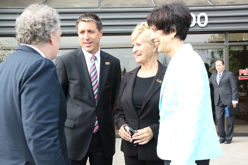- Laval, le 16 avril 2012. ¿ Le premier ministre du Québec, Jean Charest, en compagnie de la présidente du Conseil du trésor, ministre de l¿Administration gouvernementale et ministre responsable de la région de Laval, Michelle Courchesne, du ministre délégué aux Finances, Alain Paquet, du député de Chomedey, Guy Ouellette, de la députée de Mille-Îles, Francine Charbonneau, et du député de Vimont, Vincent Auclair, était de passage à Laval dans le cadre de la tournée CAP NORD.Source: Direction des Communications, ministère du Conseil exécutif