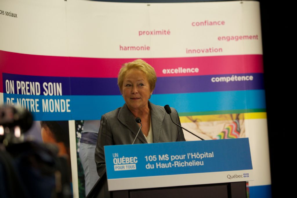 - Saint-Jean-sur-Richelieu, le 30 septembre 2013 ¿ La première ministre du Québec, Pauline Marois, accompagnée du ministre de la Santé et des Services sociaux et ministre responsable des Aînés, Réjean Hébert, et du député de Saint-Jean et whip adjoint du gouvernement, Dave Turcotte, a procédé à l'annonce de l'agrandissement de l'Hôpital du Haut-Richelieu, une installation du Centre de santé et de services sociaux Haut-Richelieu¿Rouville. Celui-ci fera en effet l¿objet de travaux majeurs d¿agrandissement et d¿un réaménagement. Le coût de l'ensemble du projet est estimé à 105 M$, incluant les coûts de construction, de mobilier et d'équipement, ainsi que les frais de gestion et de contingence.Source: Direction des Communications, ministère du Conseil exécutif