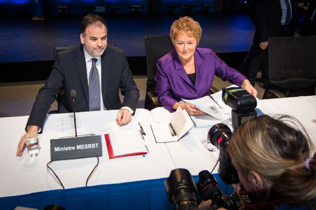 Montréal, le 26 février 2013 ¿ La première ministre du Québec, Pauline Marois, accompagnée du ministre de l¿Enseignement supérieur, de la Recherche, de la Science et de la Technologie, Pierre Duchesne, de la ministre de l¿Éducation, du Loisir et du Sport, Marie Malavoy, et du député de Laval-des-Rapides et adjoint parlementaire à la première ministre pour les dossiers jeunesse, Léo Bureau-Blouin, a conclu les travaux du Sommet sur l¿enseignement supérieur après une démarche consultative de plusieurs mois.Source: Direction des Communications, ministère du Conseil exécutif