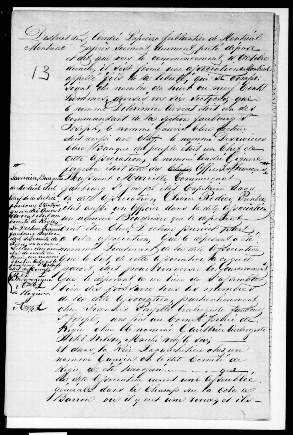 - Le déposant nomme la plupart des chefs des Fils de la Liberté, mentionne le but de l'association, etc. Ce dossier fait partie d'un ensemble de documents intitulé : Les Fils de la Liberté