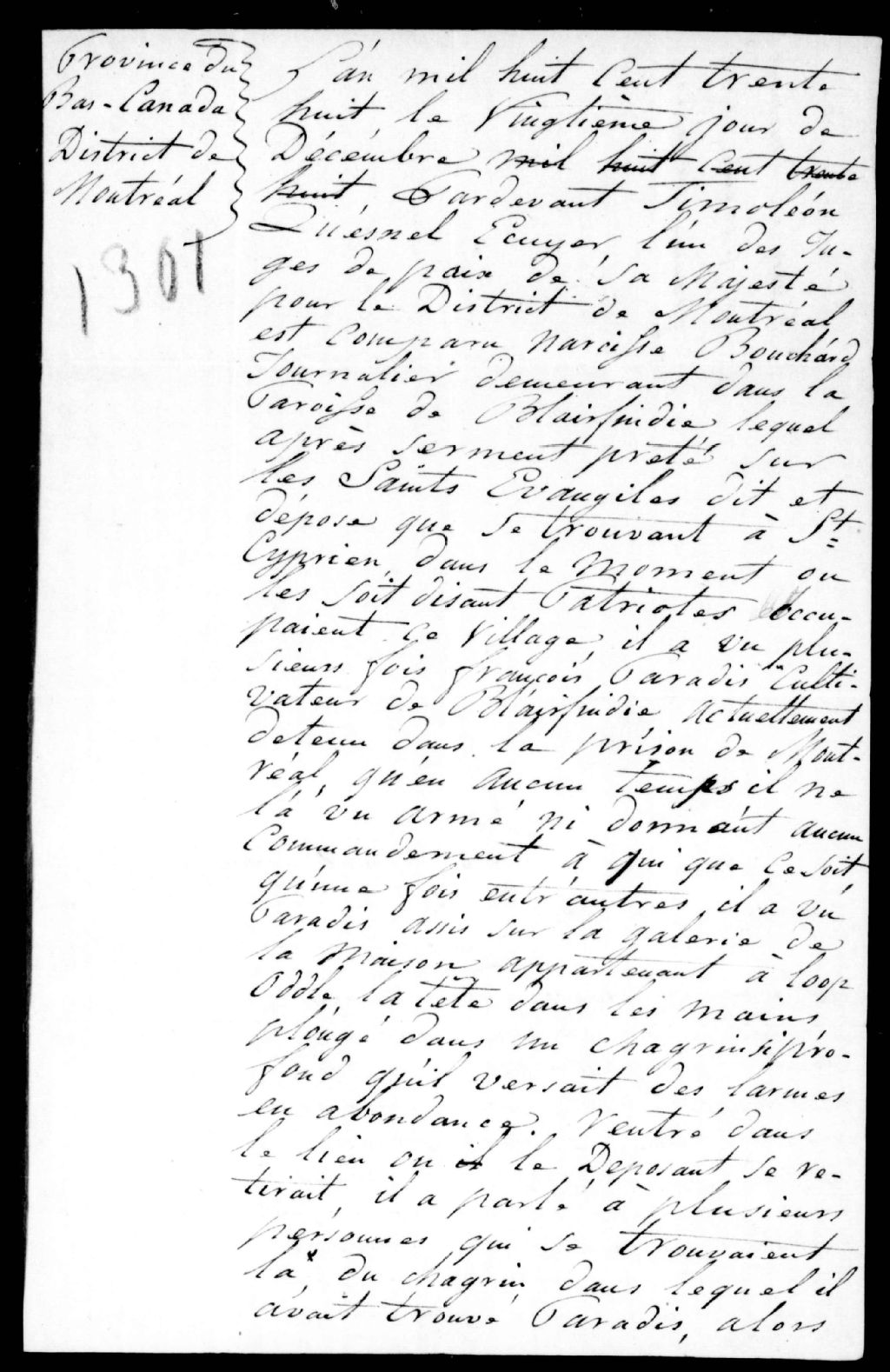 Déposition de Narcisse Bouchard, en faveur de François Paradis