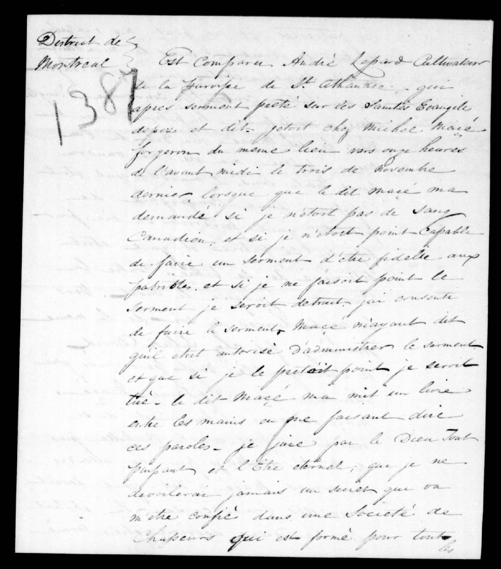 - Serment secret. Ce dossier fait partie d'un ensemble de documents intitulé : Événements de 1838. Association des frères chasseurs et serment secret - Organisation de la rébellion