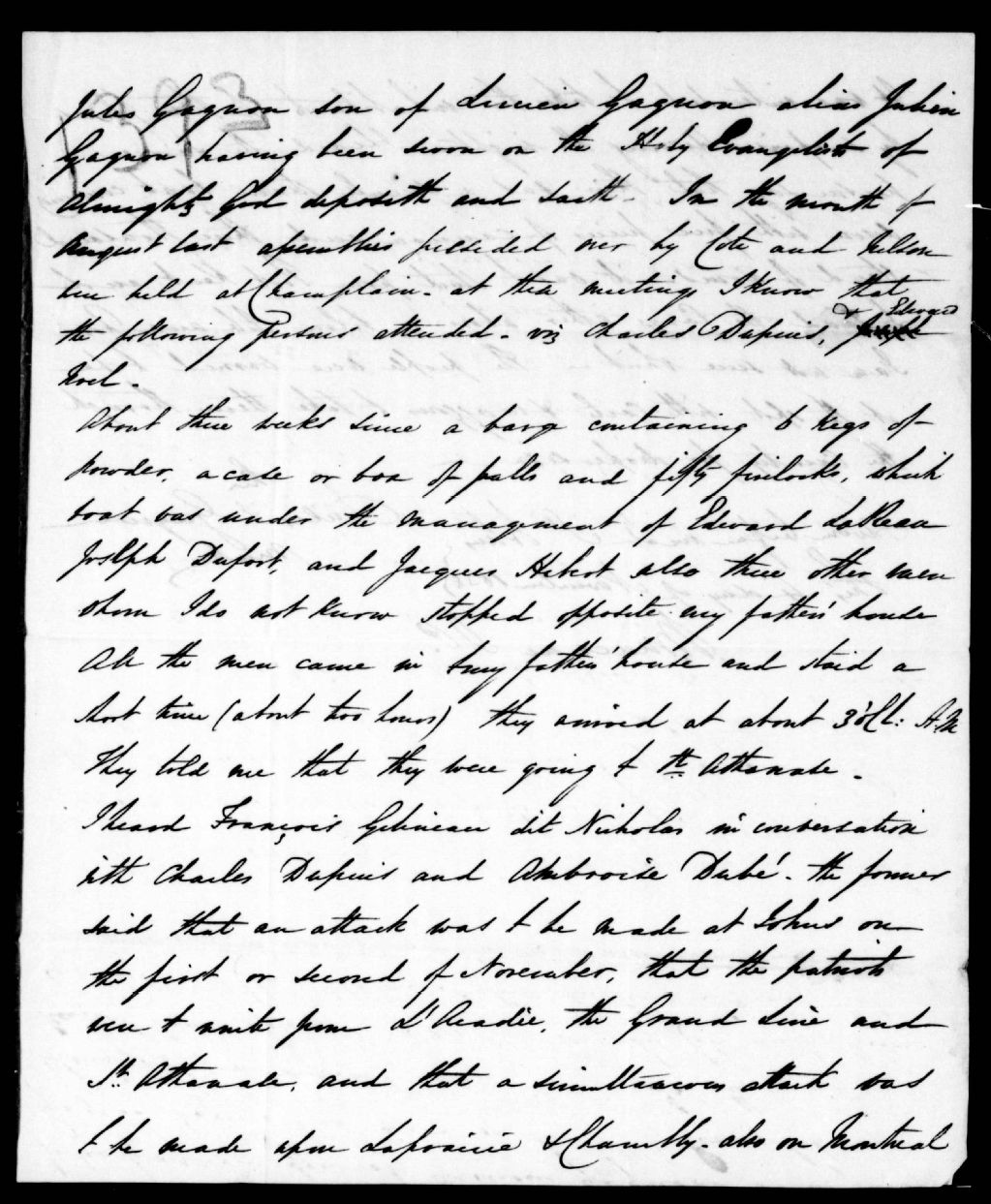- Déposition de Jules Gagnon, fils de Lucien, alias Julien Gagnon, contre Édouard Lareau, Joseph Dufort, Jacques Hébert et François Gelineau dit Nicolas