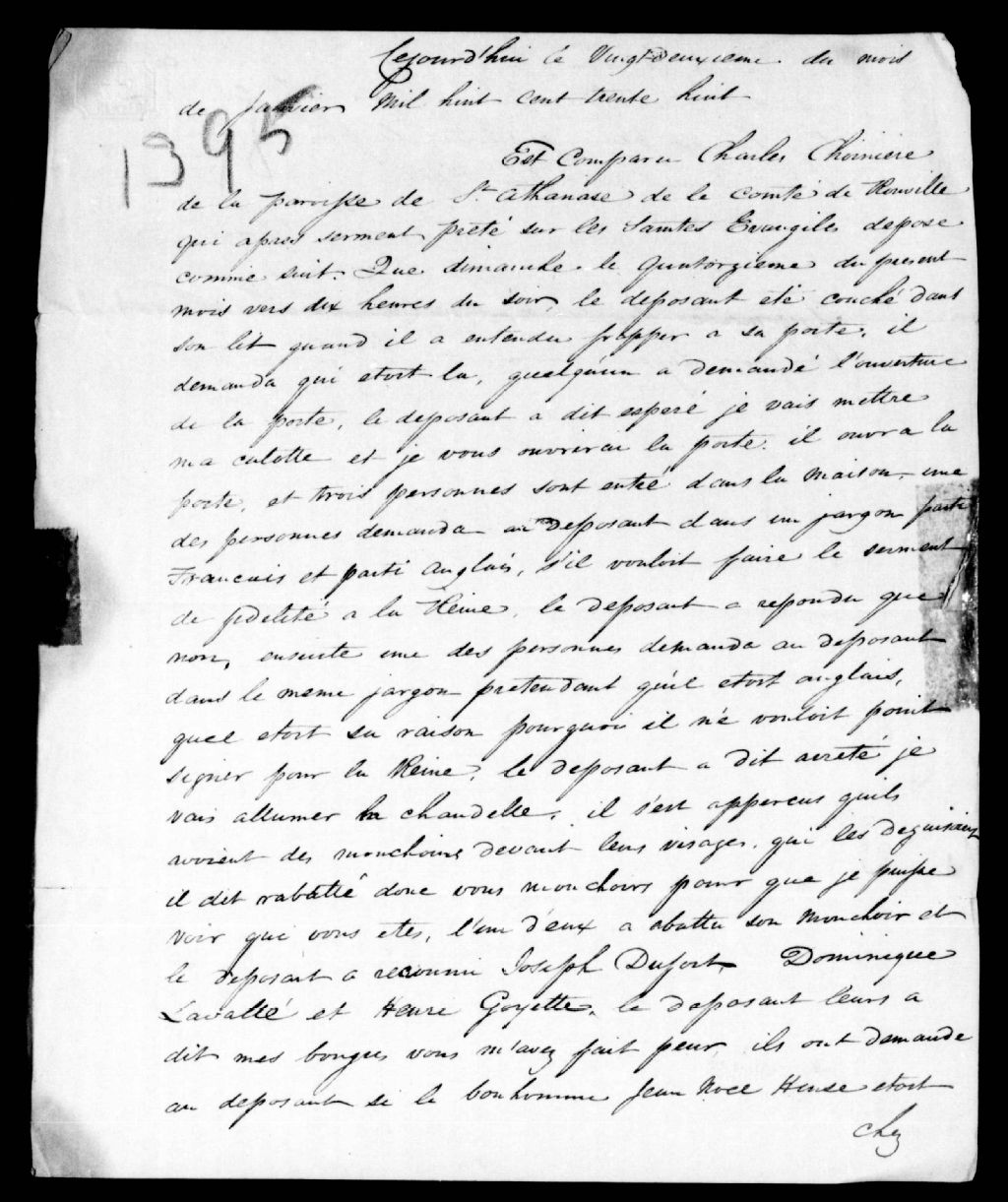 - Déposition de Charles Chicoine, contre Joseph Dufort, Dominique Lavallée, Henri Goyette