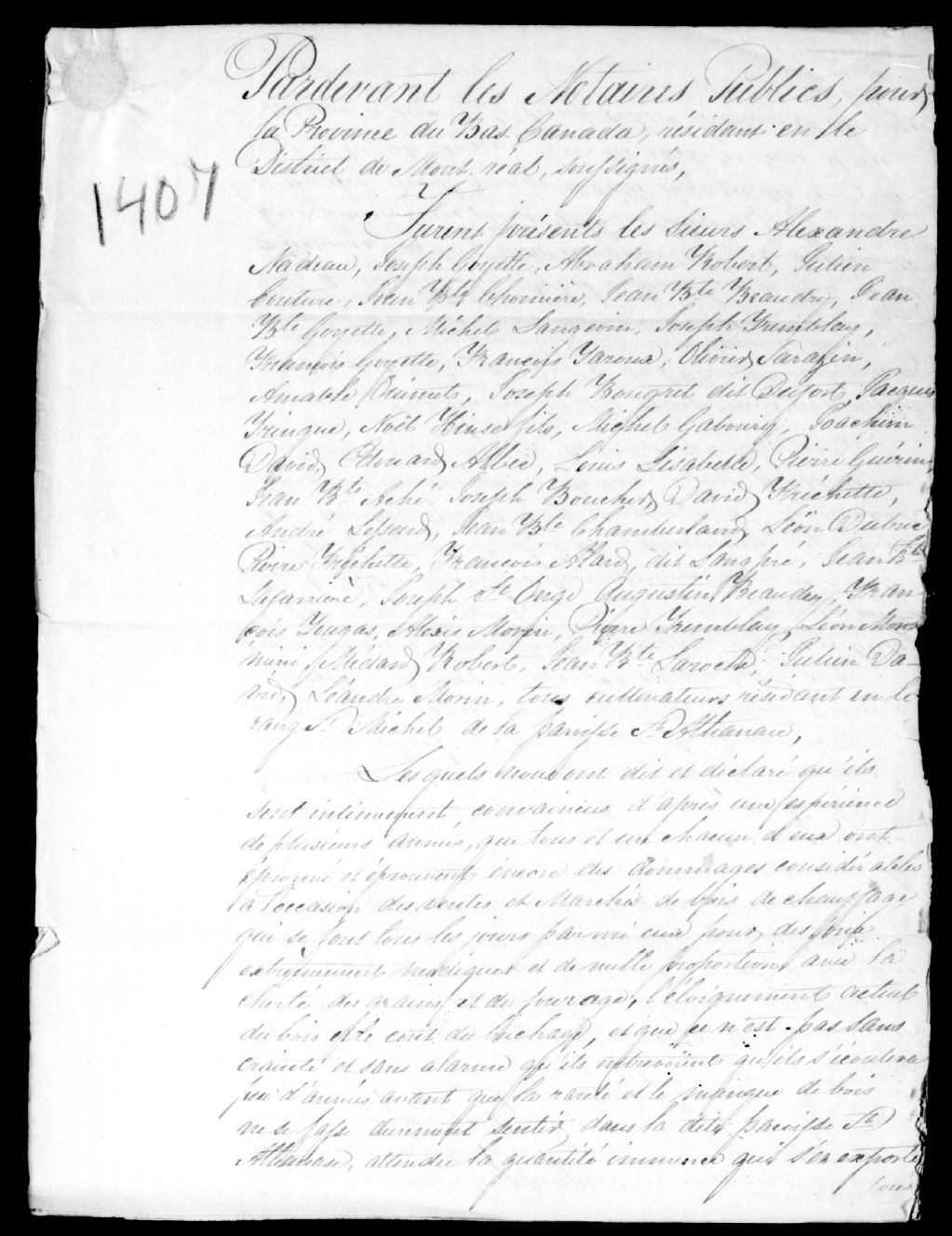 - Acte notarié du notaire Henri Aubertin. Ce dossier fait partie d'un ensemble de documents intitulé : Événements de 1838. Association des frères chasseurs et serment secret - Organisation de la rébellion