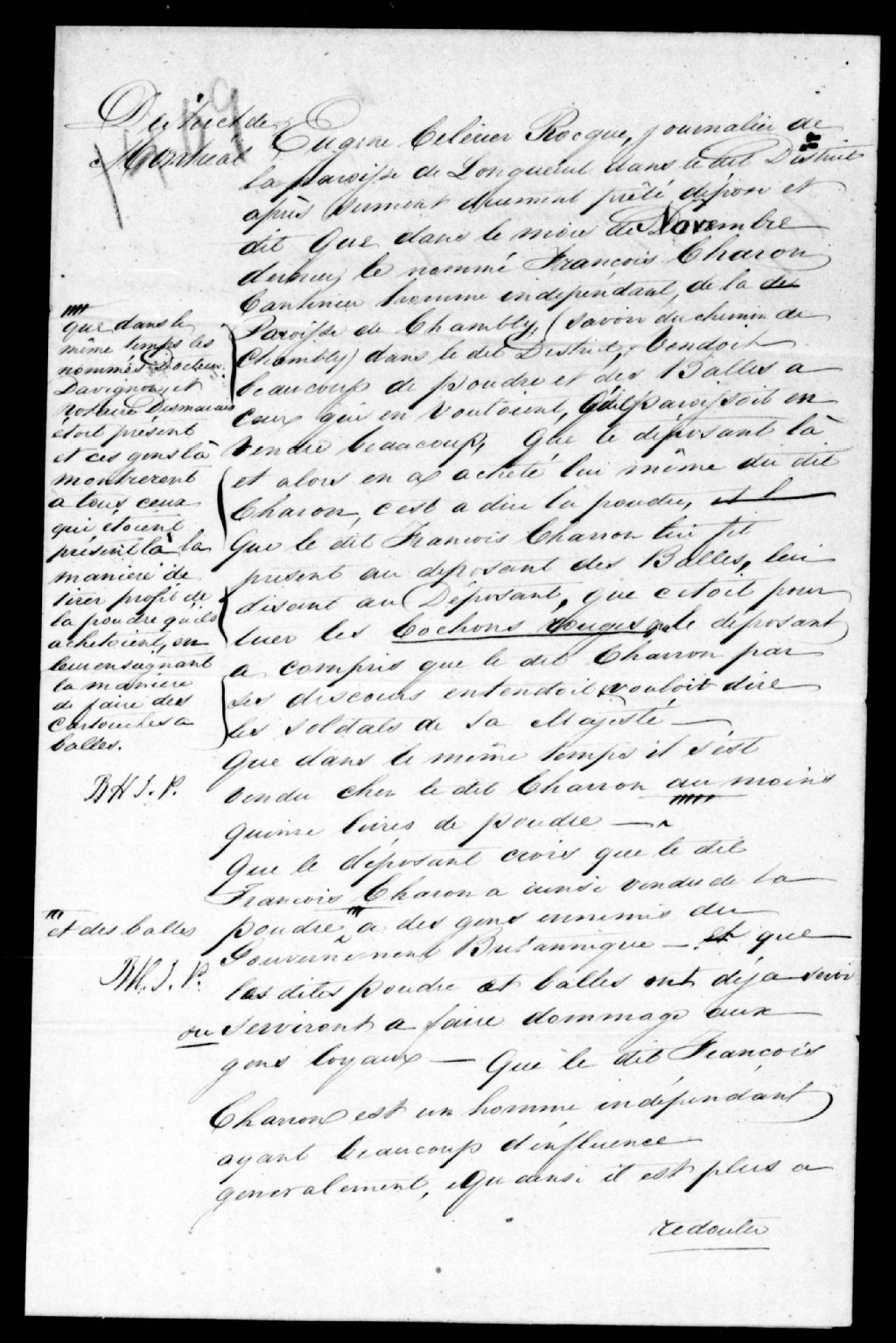- Déposition d'Eugène Celerier Rocque, journalier de Longueuil contre François Charron, de Chambly