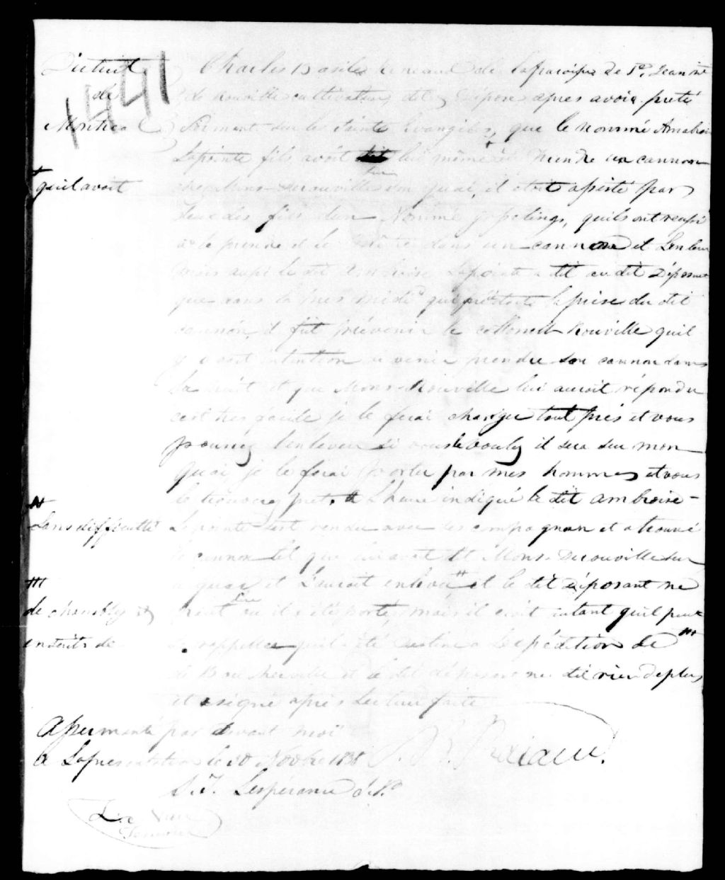 - Vol d'un canon chez monsieur De Rouville. Ce dossier fait partie d'un ensemble de documents intitulé : Événements de 1838. Association des frères chasseurs et serment secret - Organisation de la rébellion