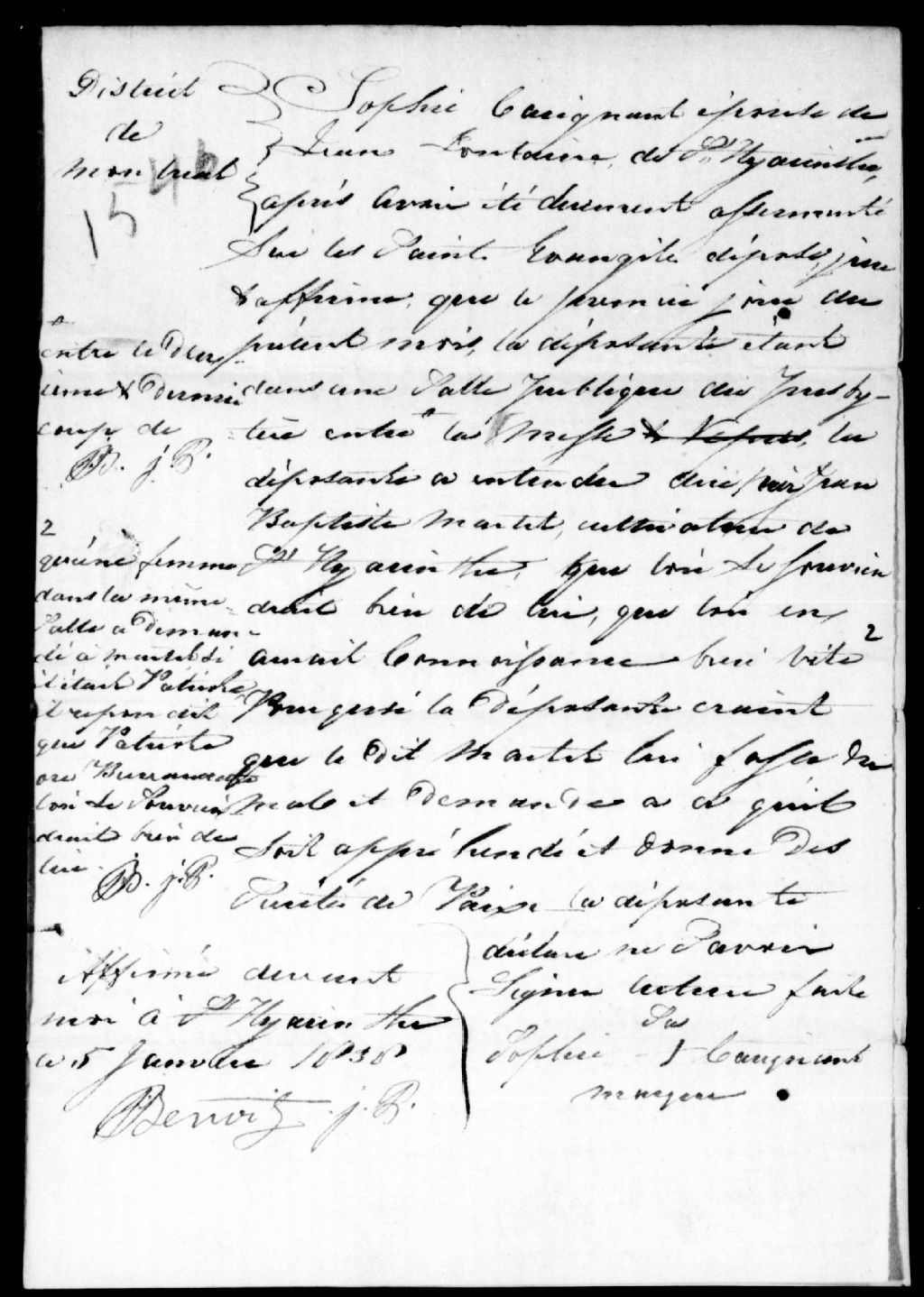 Déposition de Sophie Carignan, épouse de Jean Fontaine, de Saint-Hyacinthe, contre Jean-Baptiste Martel