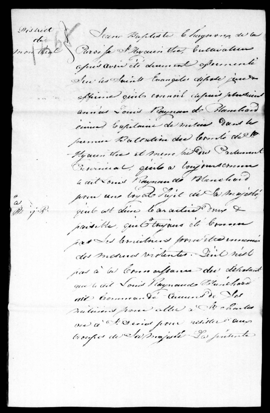 Déposition de Jean-Baptiste Chagnon, cultivateur, de Saint-Hyacinthe en faveur de Louis Renaud dit Blanchard