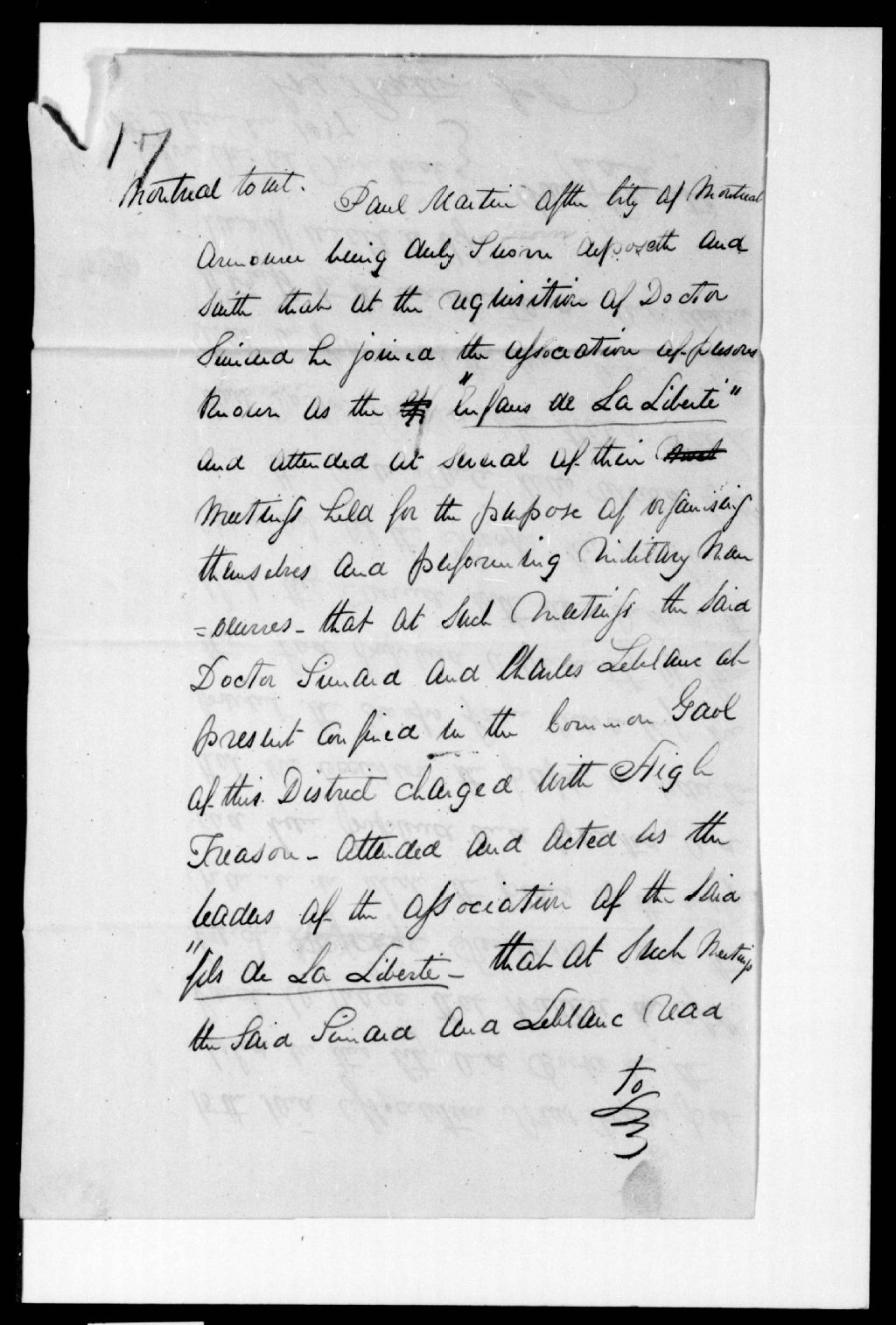 - Au sujet d'une assemblée à laquelle assistaient Charles Leblanc et le docteur Simard. Ce dossier fait partie d'un ensemble de documents intitulé : Les Fils de la Liberté