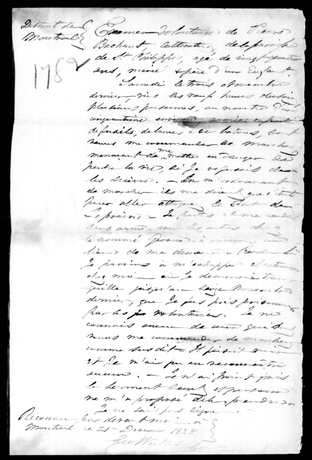 Examen de Pierre Bachant, cultivateur, de Saint-Philippe