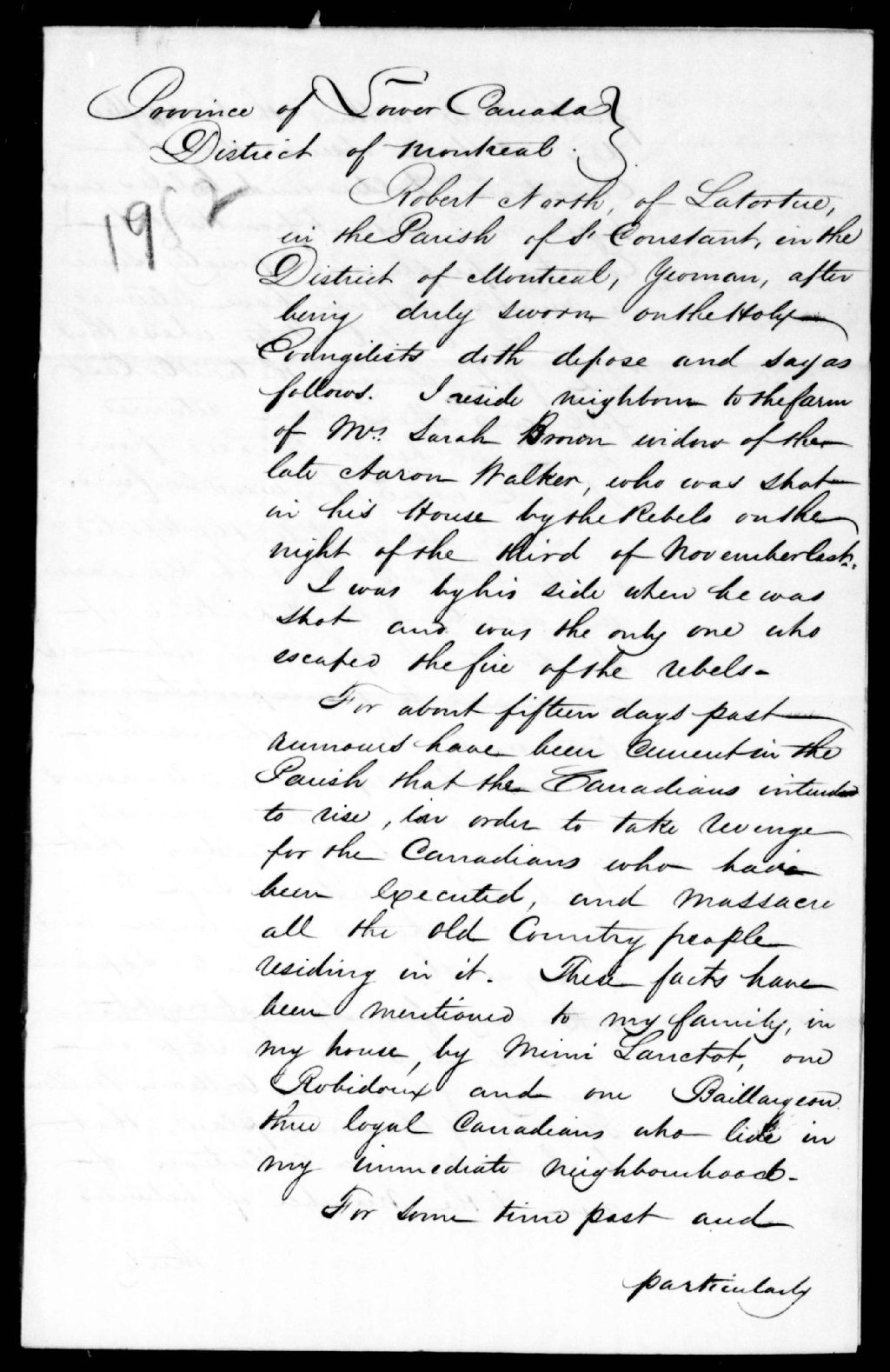 - Déposition de Robert North, de La Tortue, paroisse de Saint-Constant