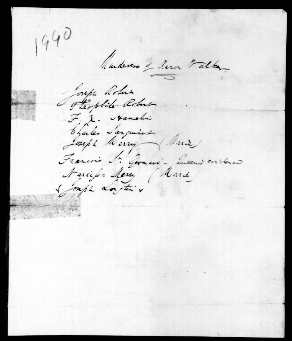 - Ce dossier fait partie d'un ensemble de documents intitulé : Assassinat d"Aaron Walker. La Tortue, Paroisse de Saint-Constant-de-la-Prairie
