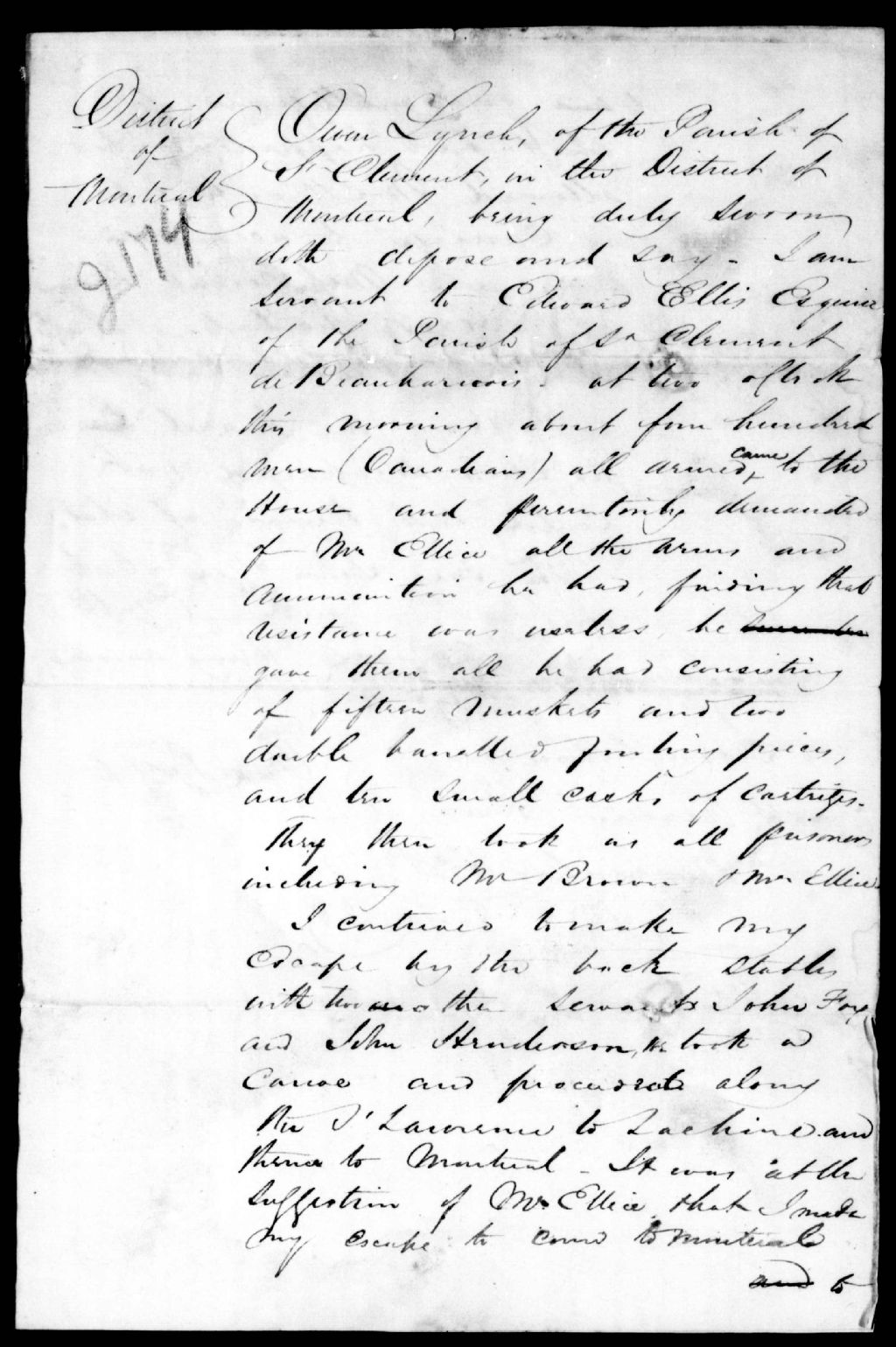- Sac de la maison de M. Ellice à Beauharnois. Ce dossier fait partie d'un ensemble de documents intitulé : Assassinat d"Aaron Walker. Beauharnois