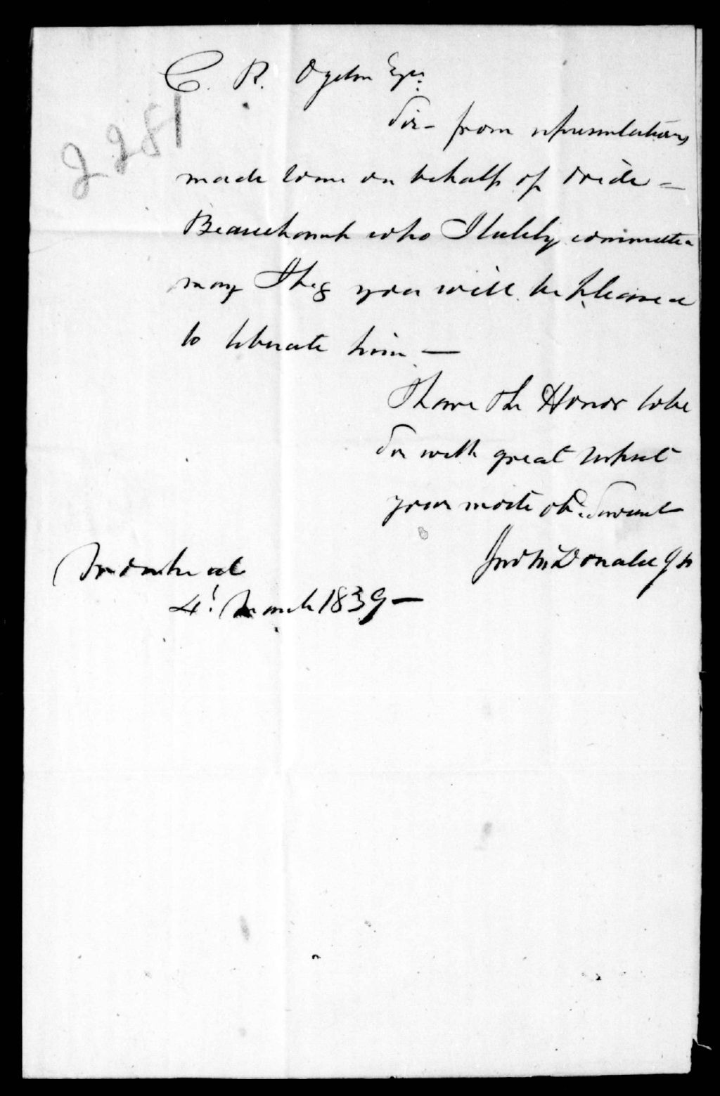 - Lettre de J. McDonald à Charles Richard Ogden, datée de Montréal