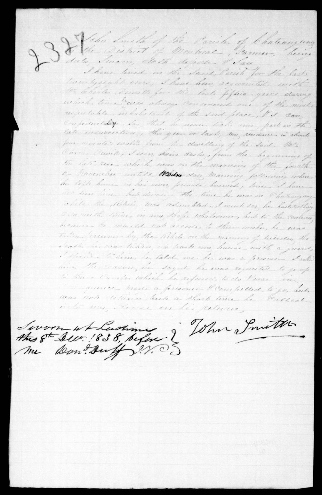 Déposition de John Smith en faveur de Charles Dewitt