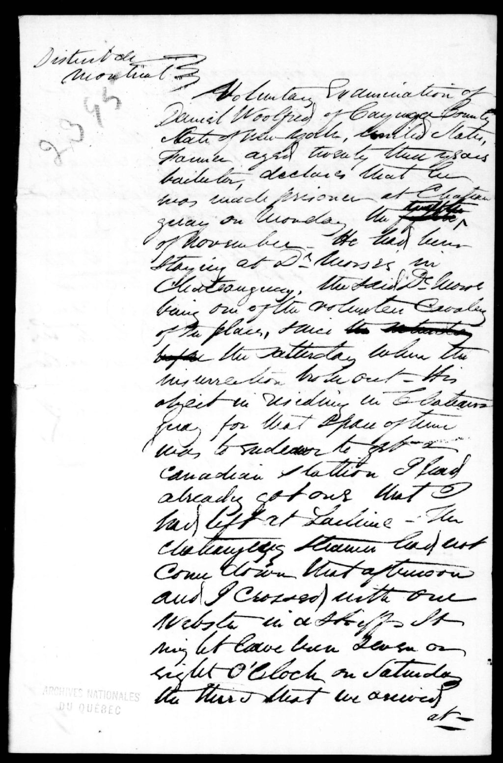 - Examen de Daniel Woolfred, de Cayagua, État de New-York