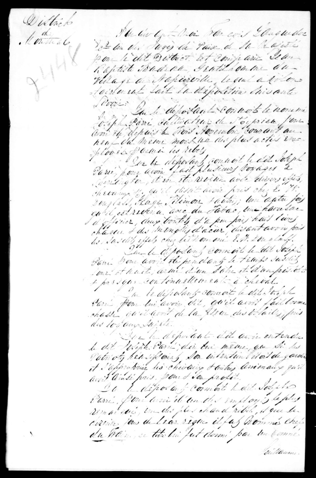Déposition de Jean-Baptiste Trudeau, 30 novembre 1838, Archives nationales à Québec, Fonds Ministère de la Justice, (03Q,E17,S37,D2448).