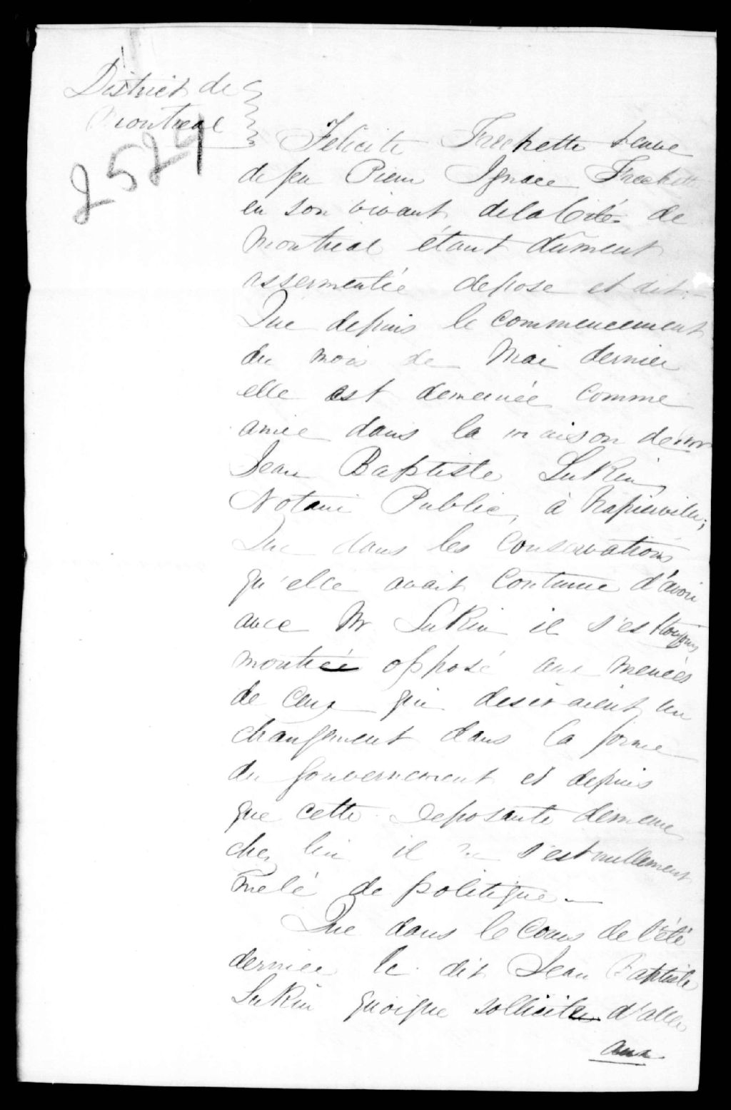 Déposition de Félicité Fréchette, veuve de Pierre Fréchette, en faveur de Jean-Baptiste Lukin, notaire, de Saint-Cyprien-de-Napierville