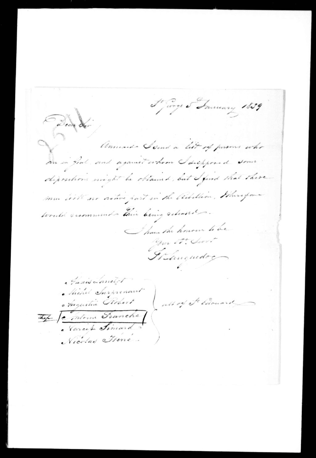 Lettre de François Languedoc à Alexandre Buchanan, datée de Saint-Georges