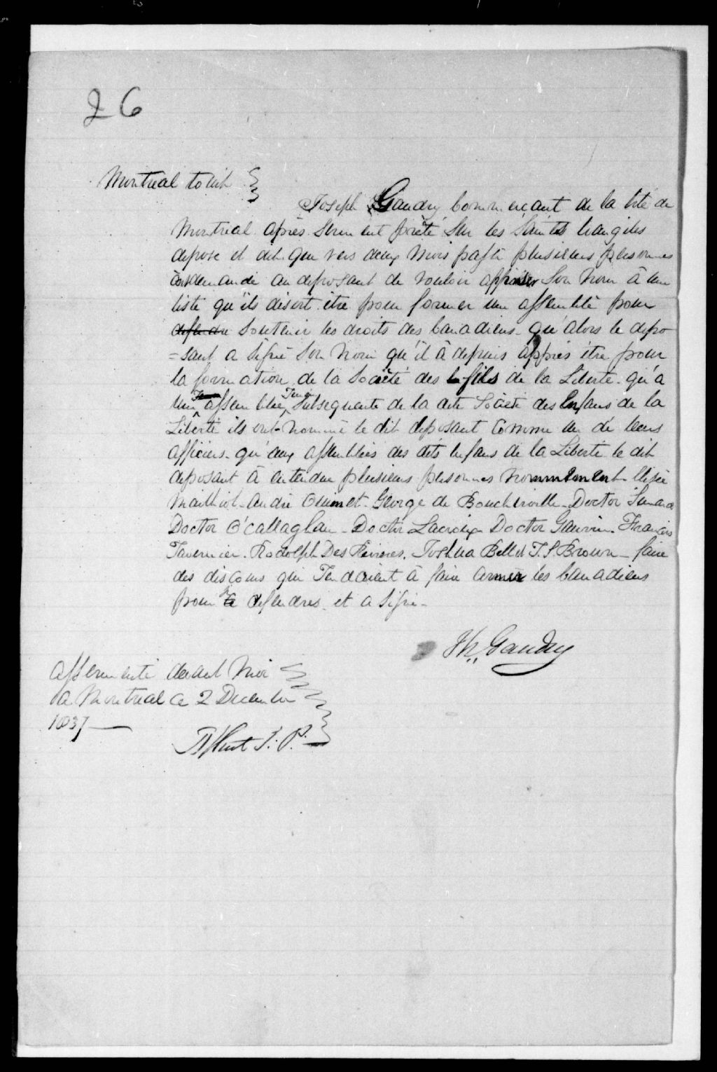 - Au sujet des assemblées des Fils de la Liberté. Ce dossier fait partie d'un ensemble de documents intitulé : Les Fils de la Liberté